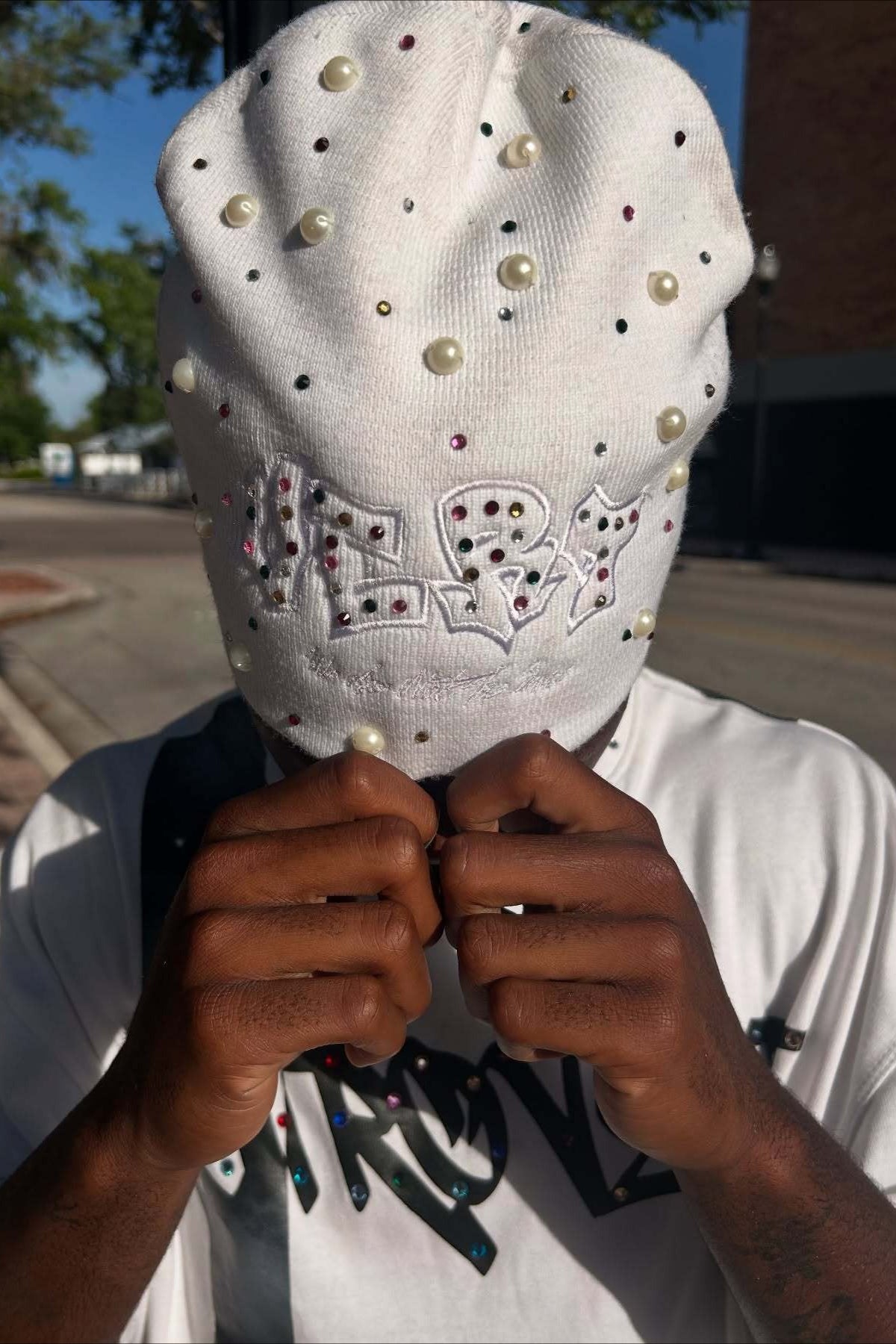 Street Style Pearl Rhinestone Letter Knitted Hat