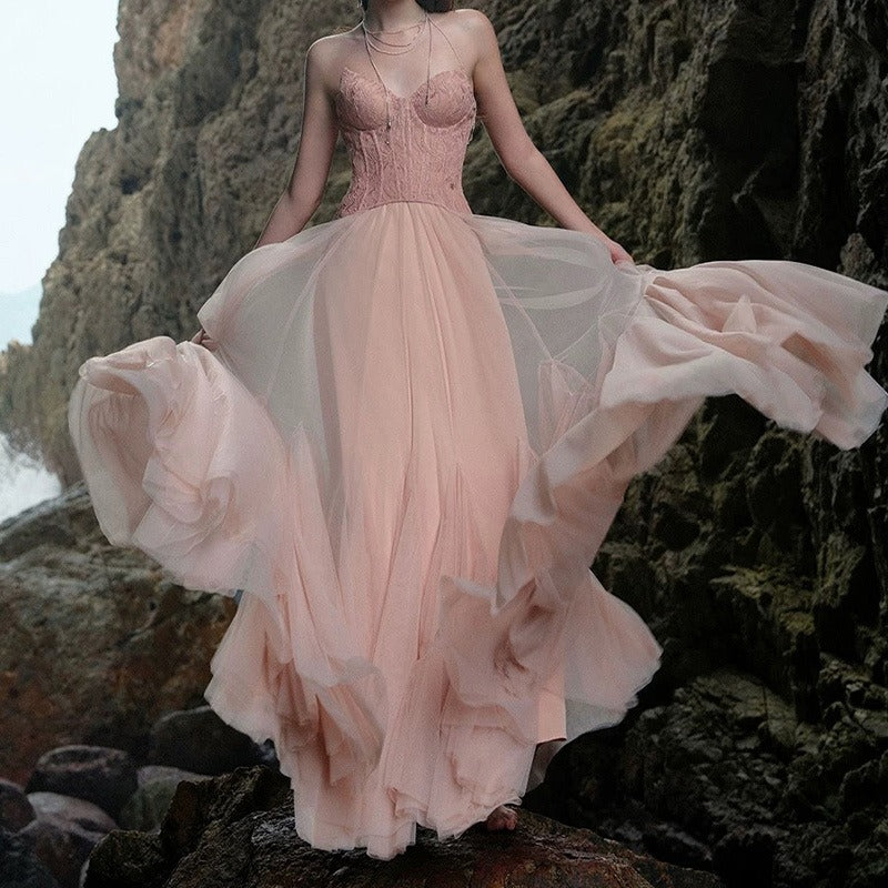 Irregular Sheer Tulle Patchwork Metal Decorative Prom Dress