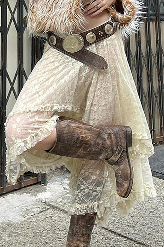 Retro Low-Waist Ruffled Asymmetrical Skirt