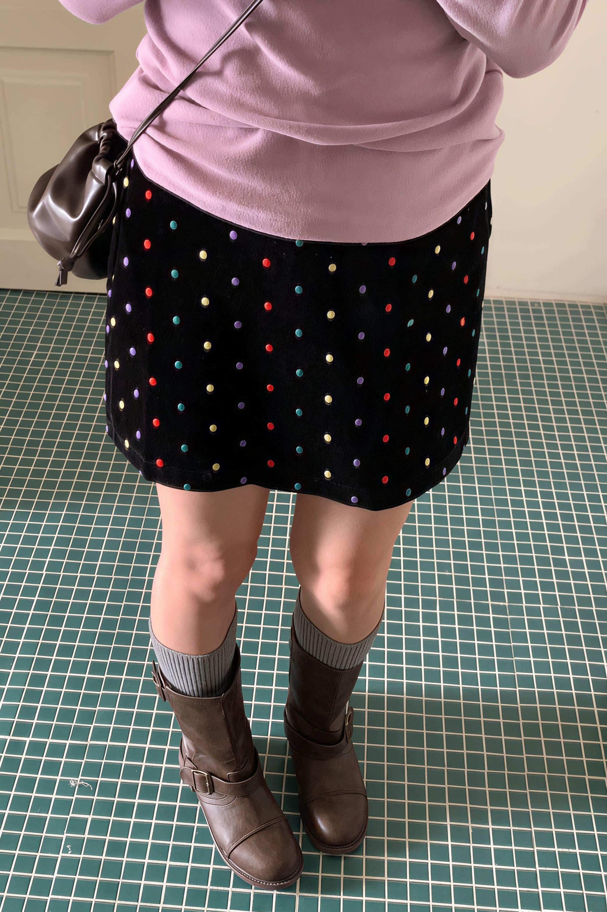 Fashionable Embroidered Polka Dot Velvet Skirt