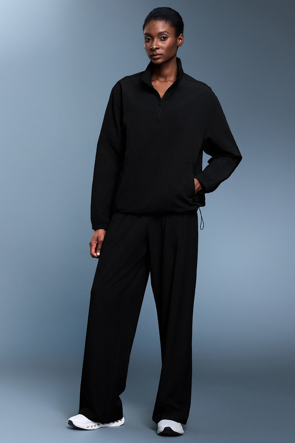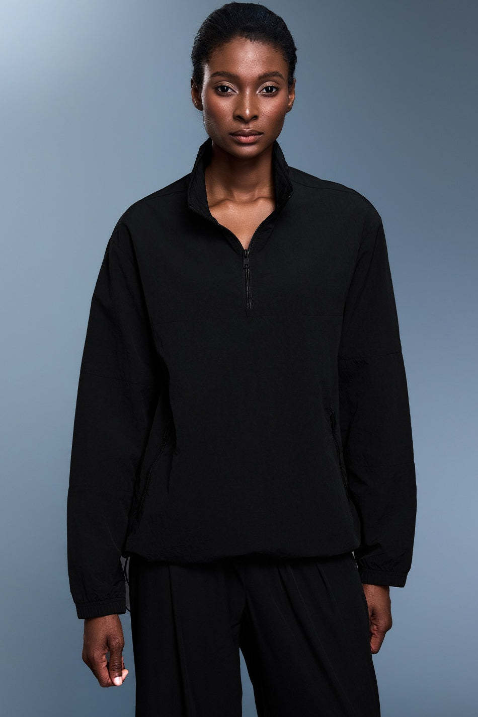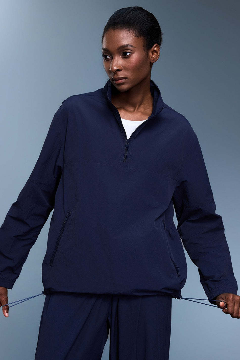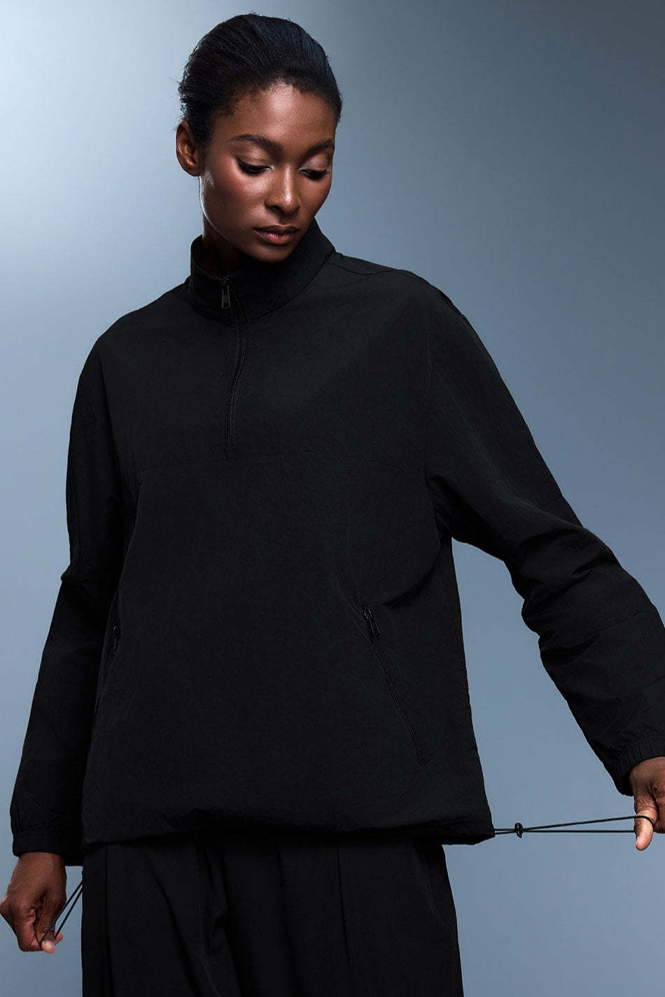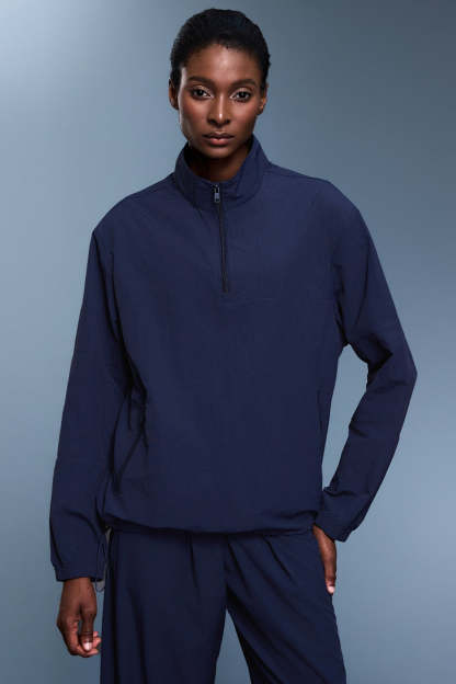 • Fit: Regular Fit • Neckline: Hooded • Sleeve Type: Raglan Sleeve • Sleeve Length: Long Sleeve • Details: Zipper, Drawstring • Composition: Polyester, Spandex