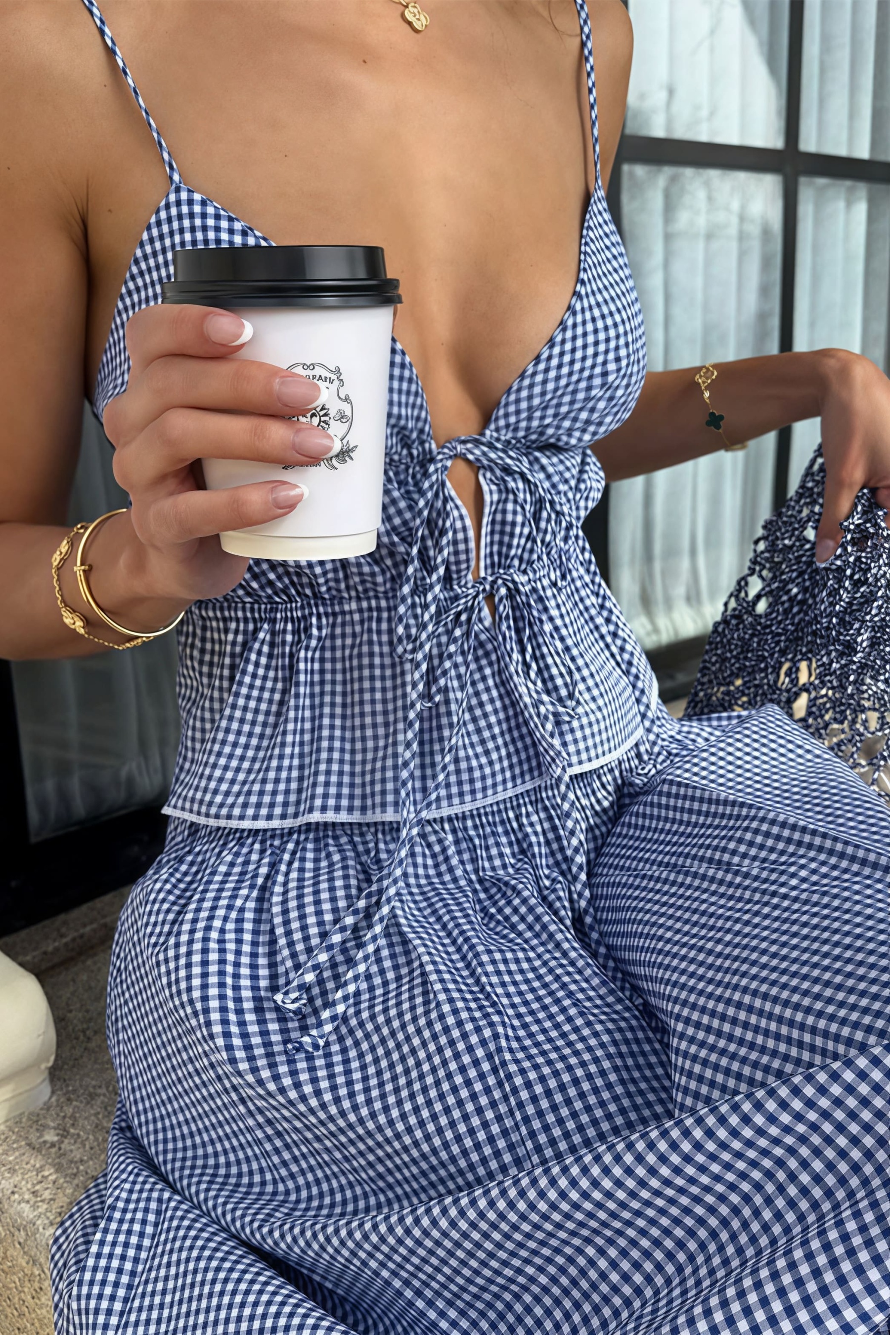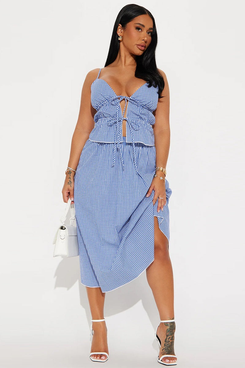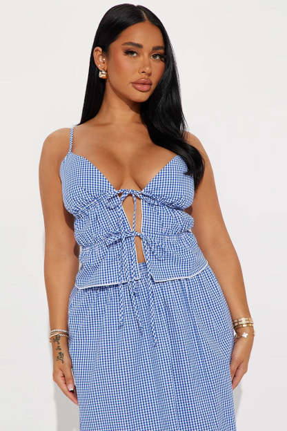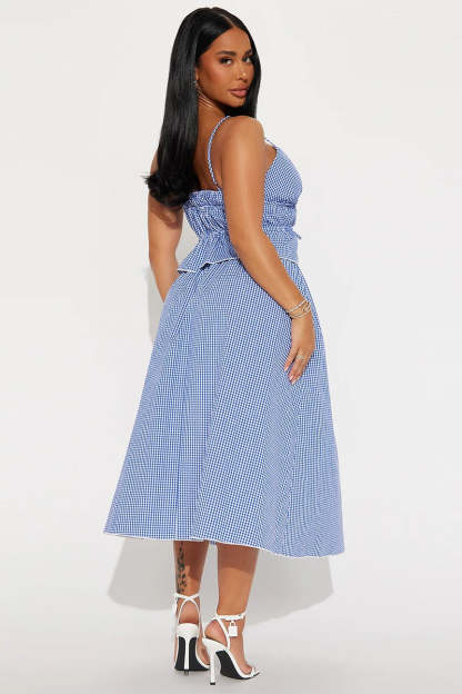 • Skirt Length: Midi Skirt • Sleeve Type: Sleeveless • Sleeve Length: Sleeveless • Details: Plaid • Composition: Polyester