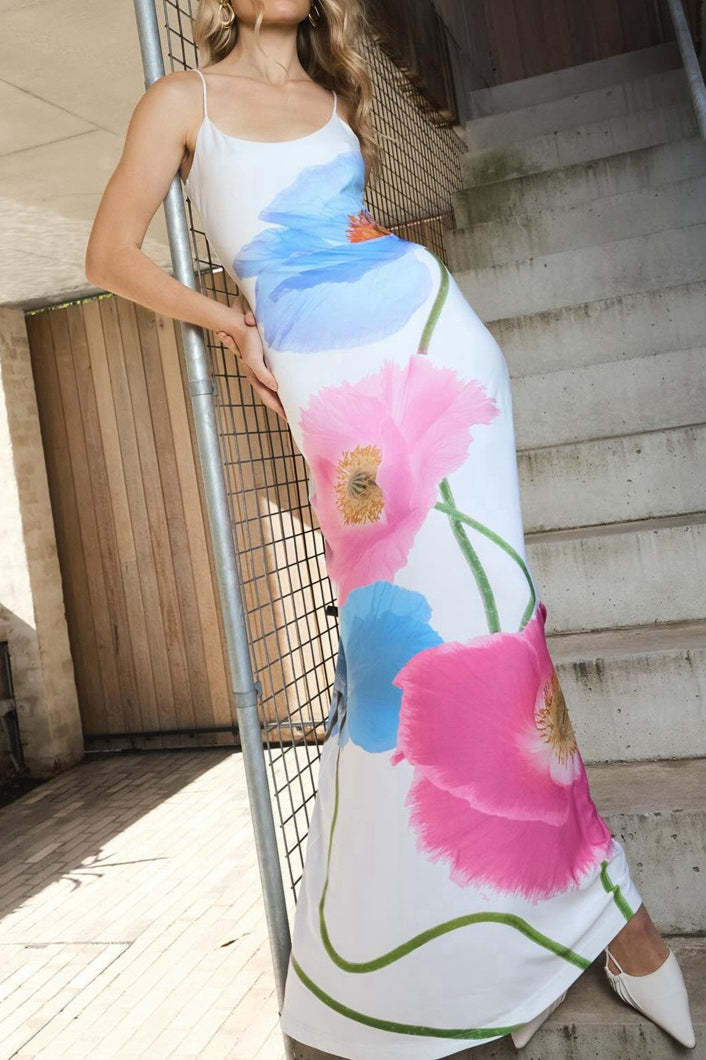 Beach Floral Print Backless Maxi Dress