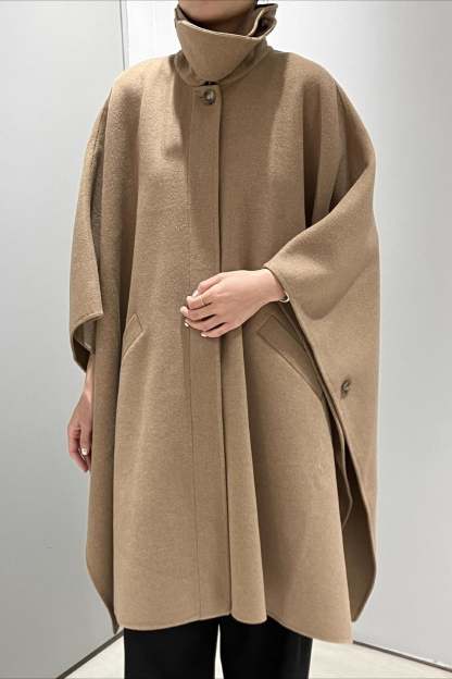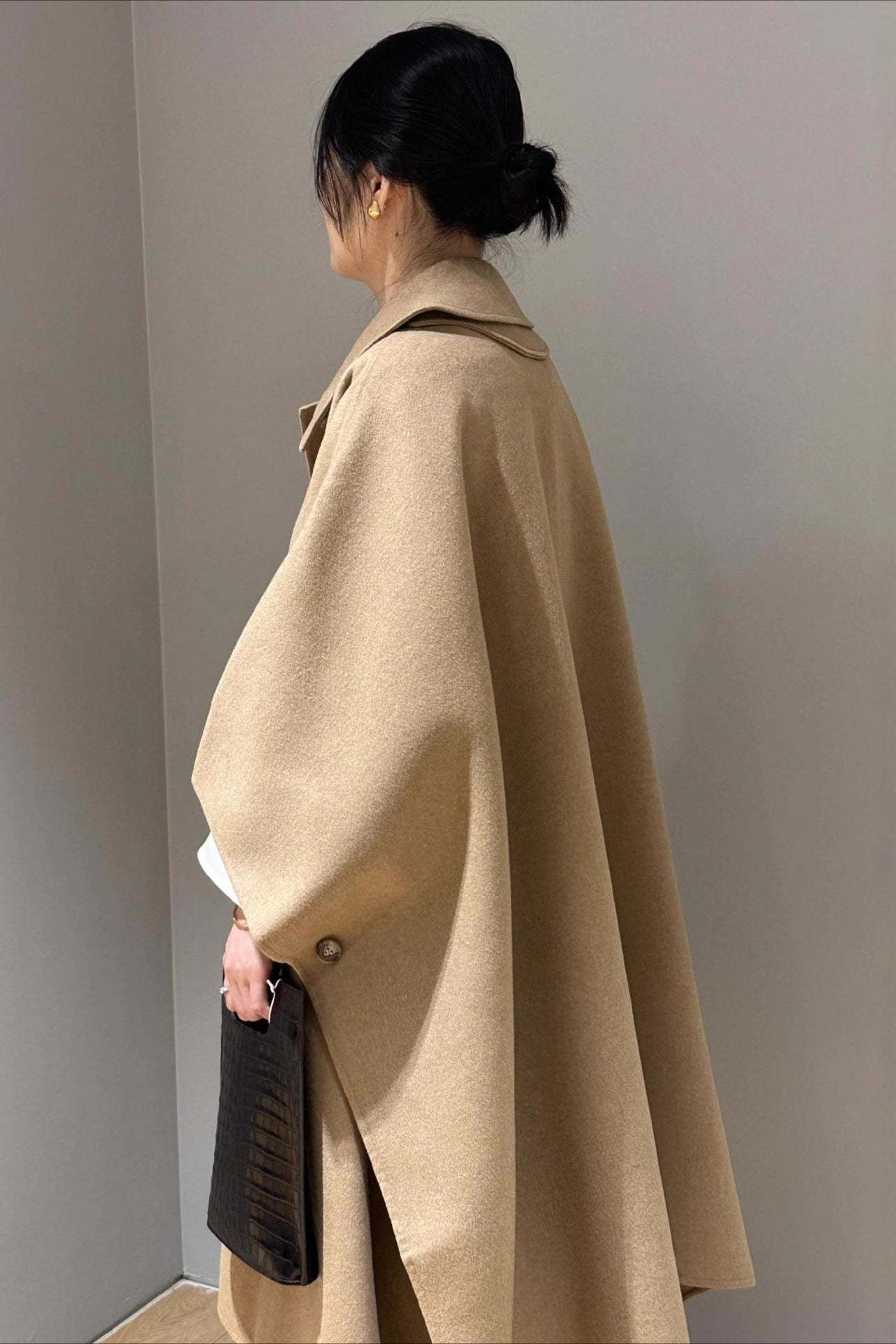 Beige Lapel Double Faced Wool Blend Cape Convertible Overcoat