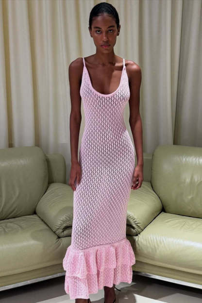 • Clothing Type: Bodycon Dress • Dress Length: Maxi • Waist Type: High Waist • Neckline: V-Neck • Sleeve Type: Regular Sleeve • Composition: Cotton, Polyester • Details: Hollow Out Maxi Dress