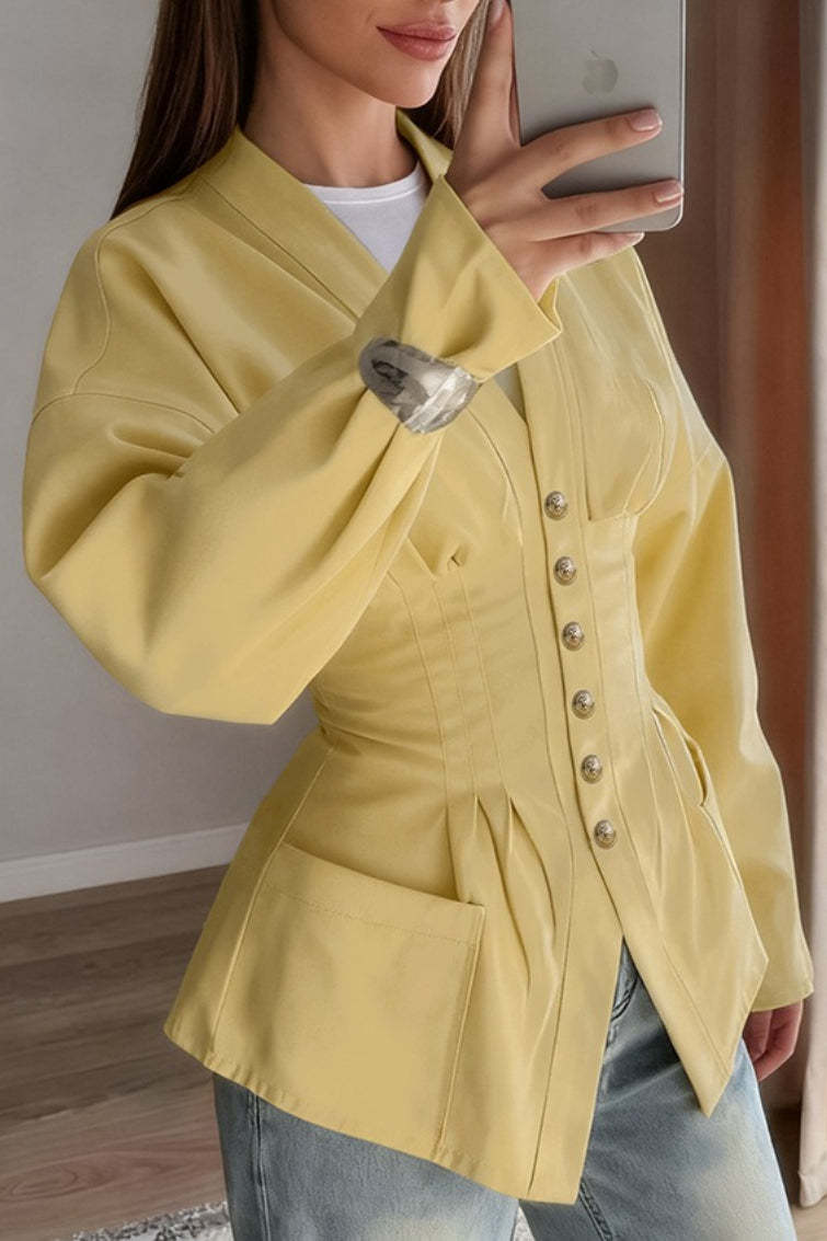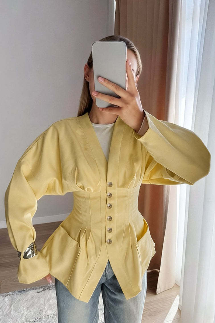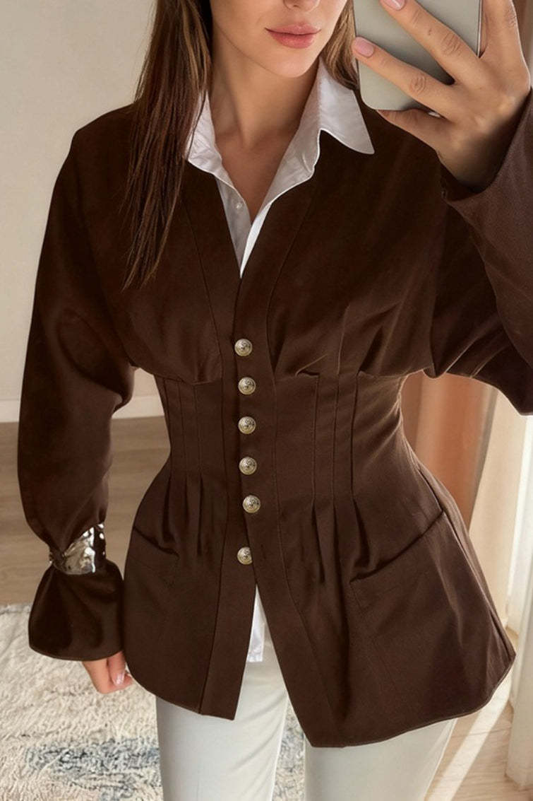 • Fit: Fitted • Neckline: Shirt Collar • Sleeve Length: Long Sleeve • Sleeve Type: Shirt Sleeve • Details: Waist Cinching • Composition: Coolmax Cotton, T400