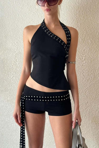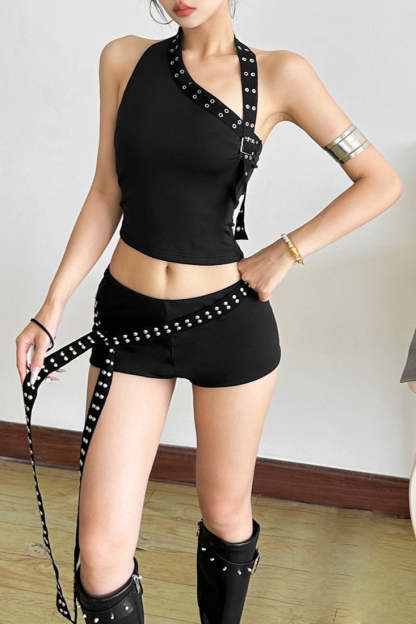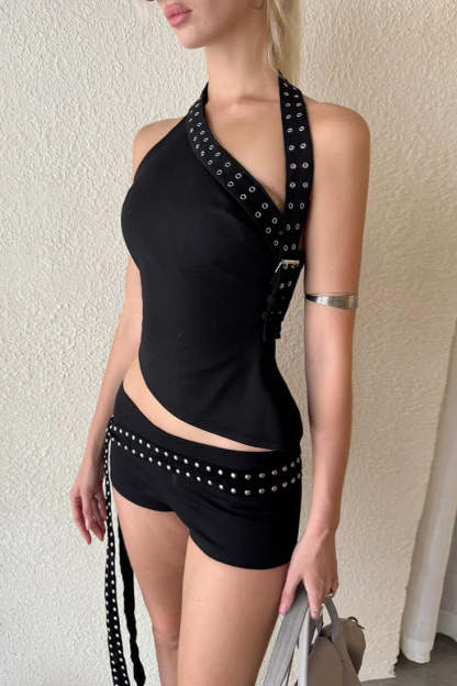 • Sleeve Type: Sleeveless • Sleeve Length: Sleeveless • Pants Length: Capri Length • Details: Solid Color • Composition: Polyester, Spandex