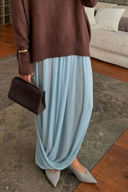 • Clothing Type: A-line Skirt • Skirt Length: Maxi • Details: Ruched • Composition: Polyester • Elasticity: Non-Stretch