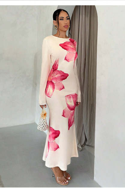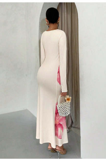 Chic Floral Print Bodycon Long Sleeve Maxi Dress