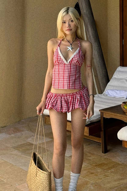 • Sleeve Type: Sleeveless • Sleeve Length: Sleeveless • Details: Plaid • Composition: Polyester, Spandex
