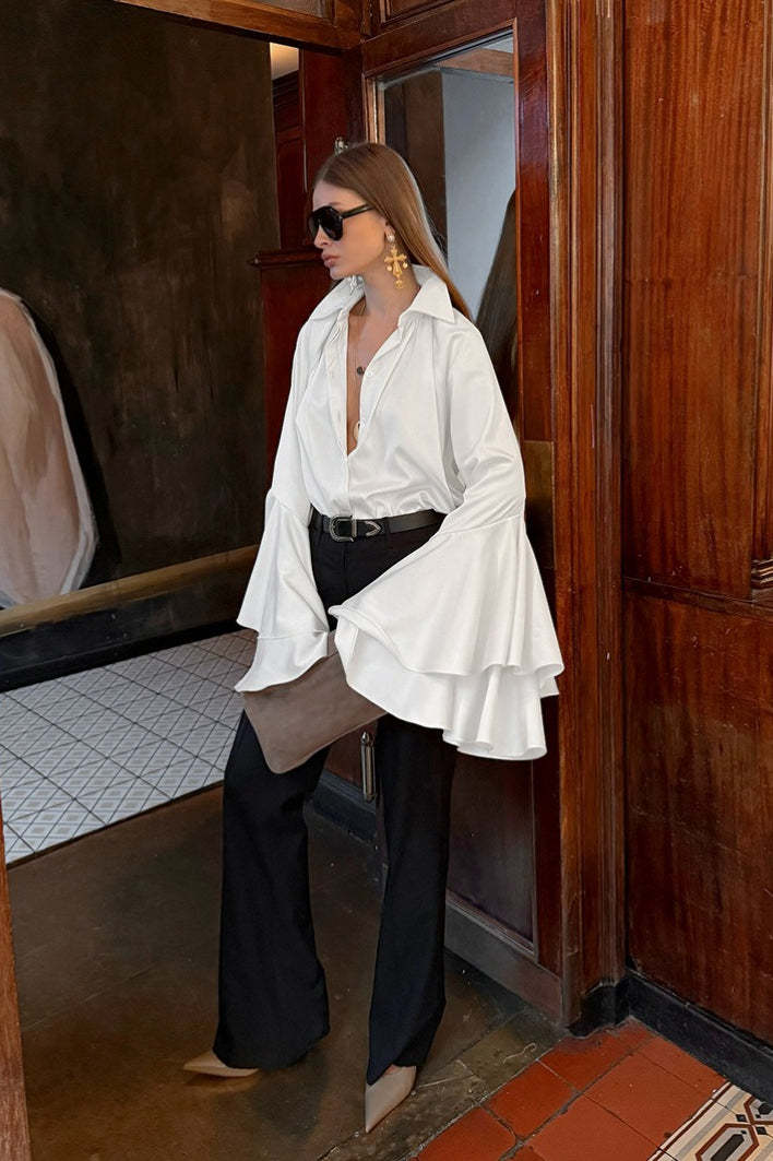• Fit: Loose Fit • Neckline: Turtleneck • Sleeve Type: Regular Sleeve • Sleeve Length: Long Sleeve • Details: Buttons • Composition: Polyester, Spandex