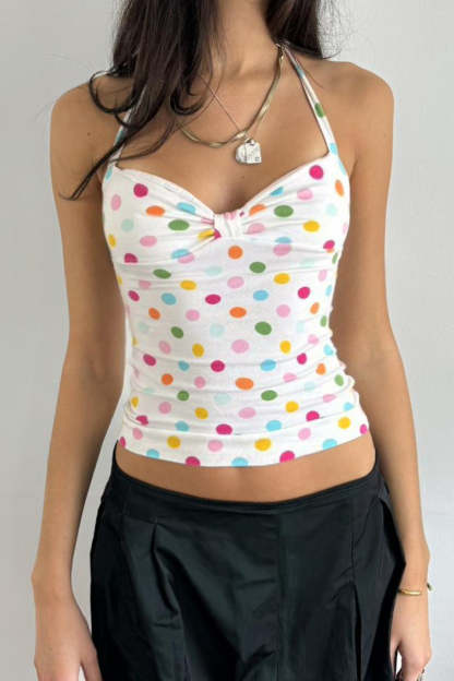 Colorful Polka Dot Halter Slim Fit Crop Top