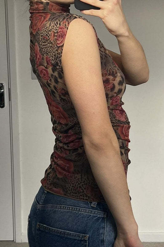 Contrast Print High Neck Blouse