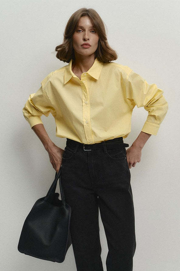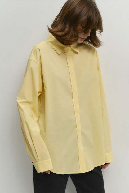 • Fit: Loose Fit • Neckline: Pointed Collar • Sleeve Type: Shirt Sleeve • Sleeve Length: Long Sleeve • Details: Buttons • Composition: Cotton