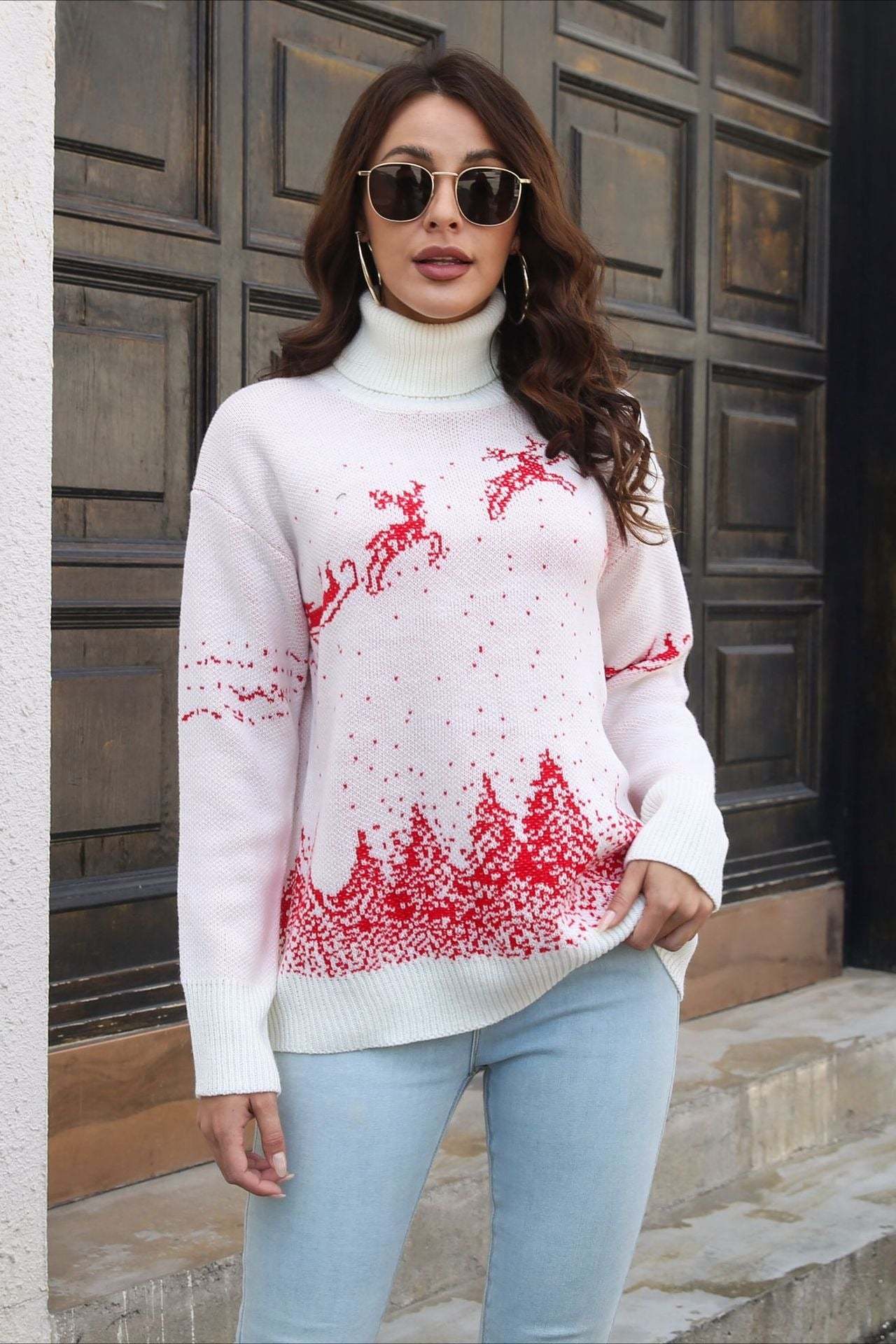 • Fit: Loose Fit • Neckline: Round Neck • Sleeve Type: Regular sleeve • Sleeve Length: Long Sleeve • Composition: Acrylic • Details: Christmas, Color Block