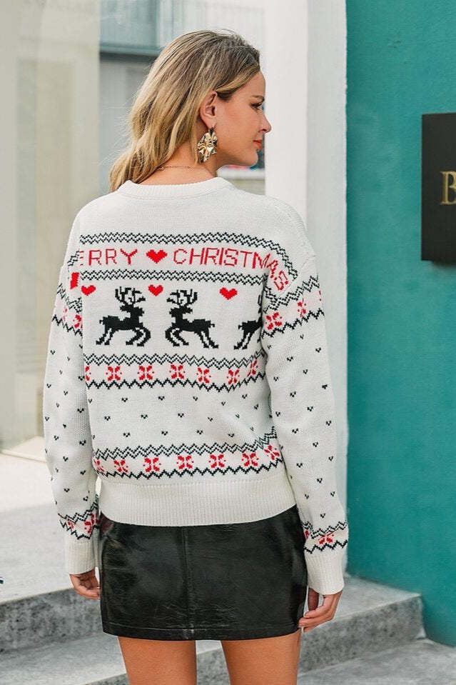 • Fit: Loose Fit • Neckline: Round Neck • Sleeve Type: Regular sleeve • Sleeve Length: Long Sleeve • Composition: Acrylic • Details: Color Block Pattern, Christmas