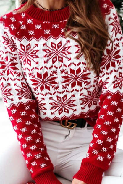 Christmas Cozy Snowflake Polka Dot Color Block Sweater