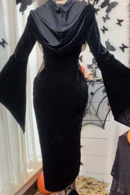 Dark Spiderweb Hooded Flare Gothic Dress