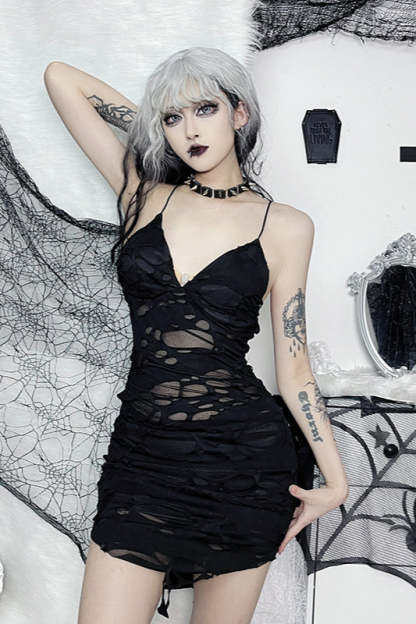Distressed Strap Gothic Dress