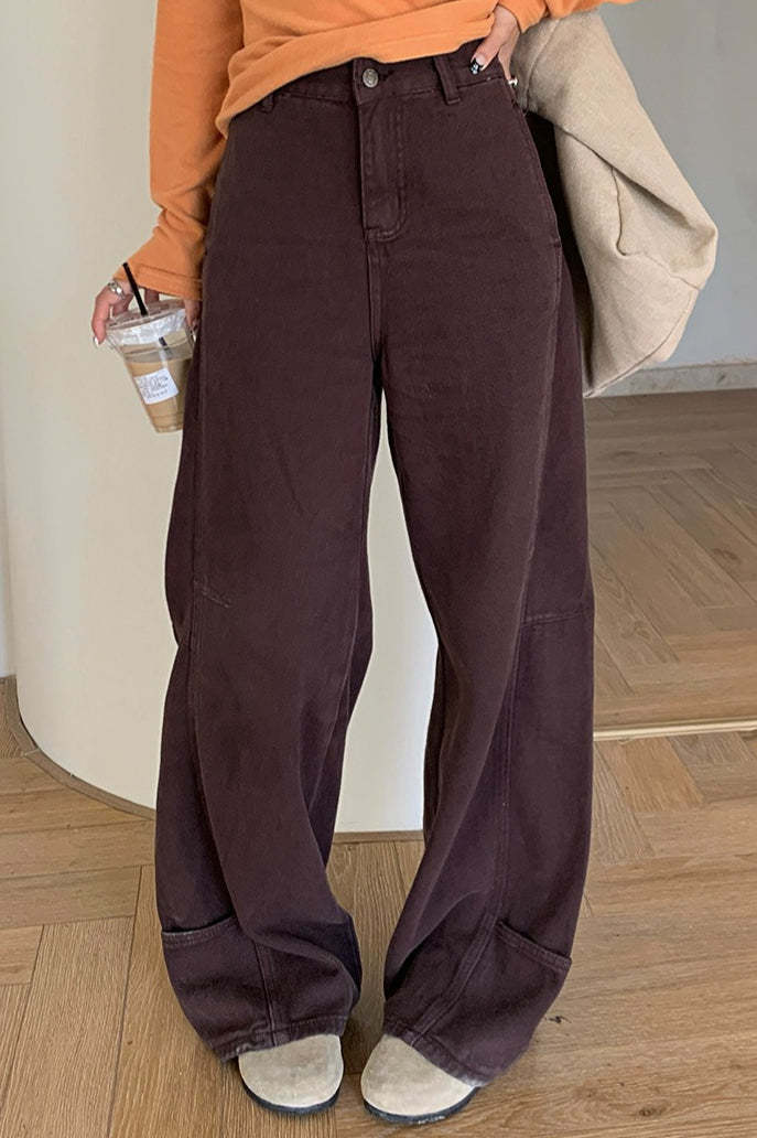 • Clothing Type: Curved Leg Pants • Length: Full Length • Waist Type: High Waist • Details: Pockets • Composition: Cotton