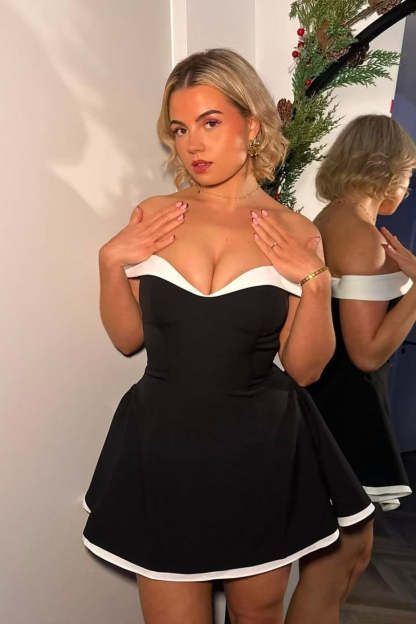 • Clothing Type: A-line Dress • Dress Length: Mini • Waist Type: High Waist • Neckline: Off-The-Shoulder • Composition: Polyester • Details: Off-The-Shoulder