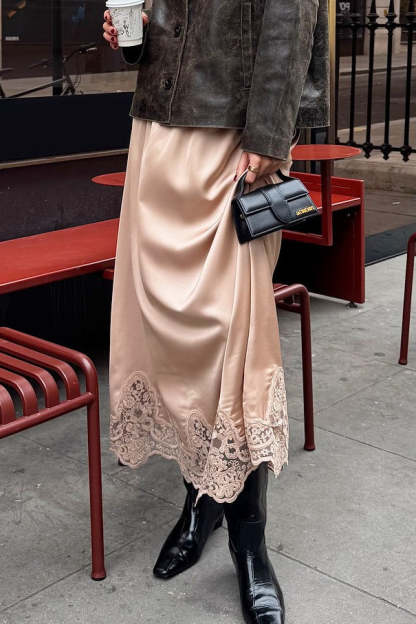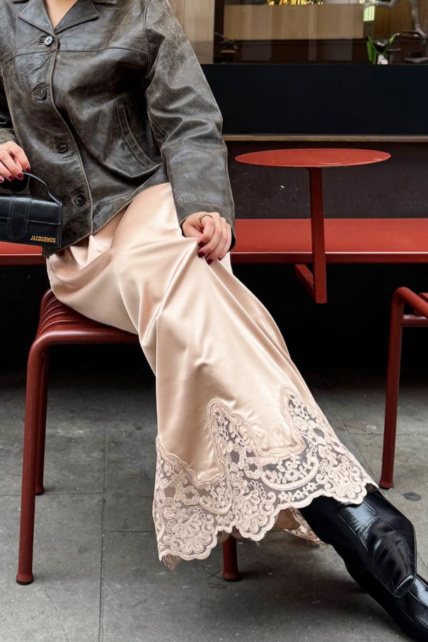 • Clothing Type: A-line Dress • Dress Length: Maxi • Details: Lace, Solid Color, Lace Trim • Composition: Polyester, Spandex