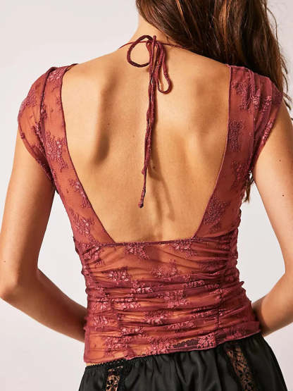 Floral Lace Sheer Mesh Crop Top