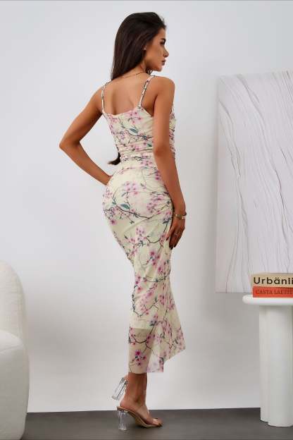 • Clothing Type: Bodycon Dress • Dress Length: Maxi • Waist Type: High Waist • Composition: Polyester, Spandex • Details: Print, Backless, Patchwork