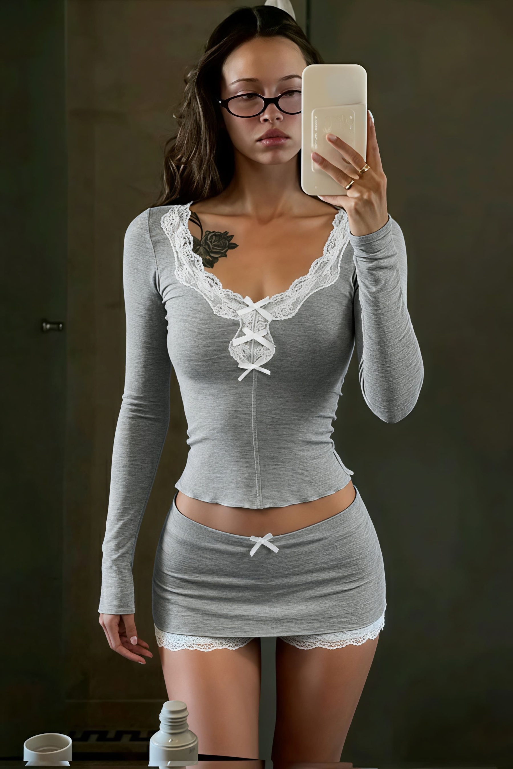 • Pants Type: 3/4 Length Pants • Sleeve Type: Regular Sleeve • Sleeve Length: Long Sleeve • Details: Lace, Patchwork • Composition: Polyester, Spandex