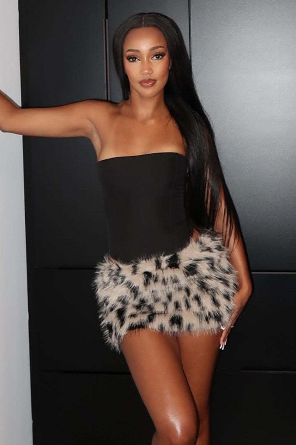 • Clothing Type: Bodycon Skirt • Dress Length: Mini • Composition: Polyester • Details: Faux Fur
