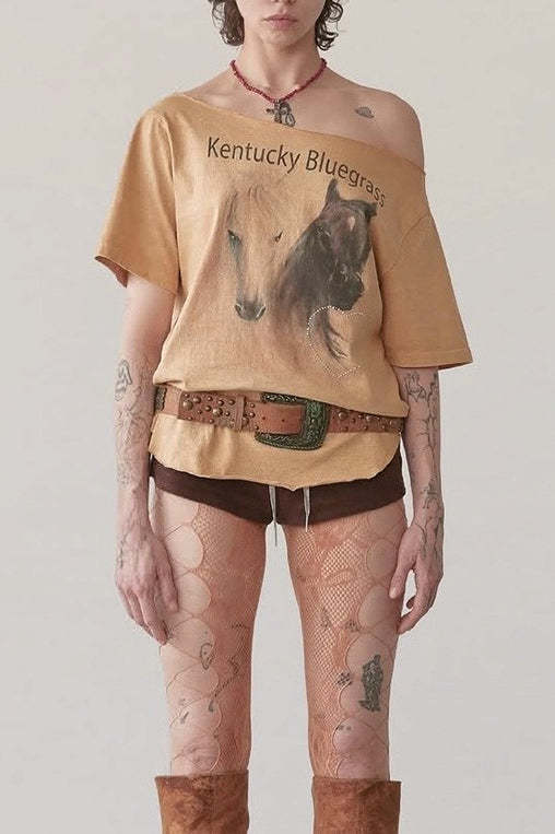 • Fit: Slim Fit • Neckline: Asymmetrical Neck • Sleeve Type: Regular Sleeve • Sleeve Length: Short Sleeve • Details: Printing • Composition: Cotton