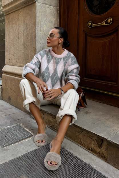• Fit: Loose Fit • Neckline: Round Neck • Sleeve Type: Regular Sleeve • Sleeve Length: Long Sleeve • Details: Diamond Pattern • Composition: Acrylic, Polyester