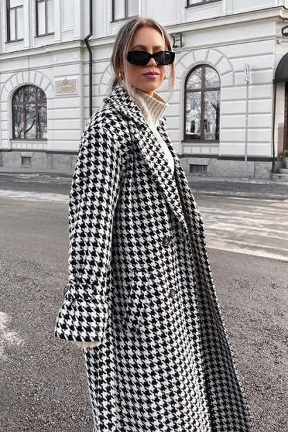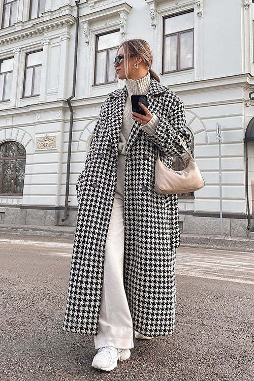 Houndstooth Long Trench Coat Chic Elegant Overcoat