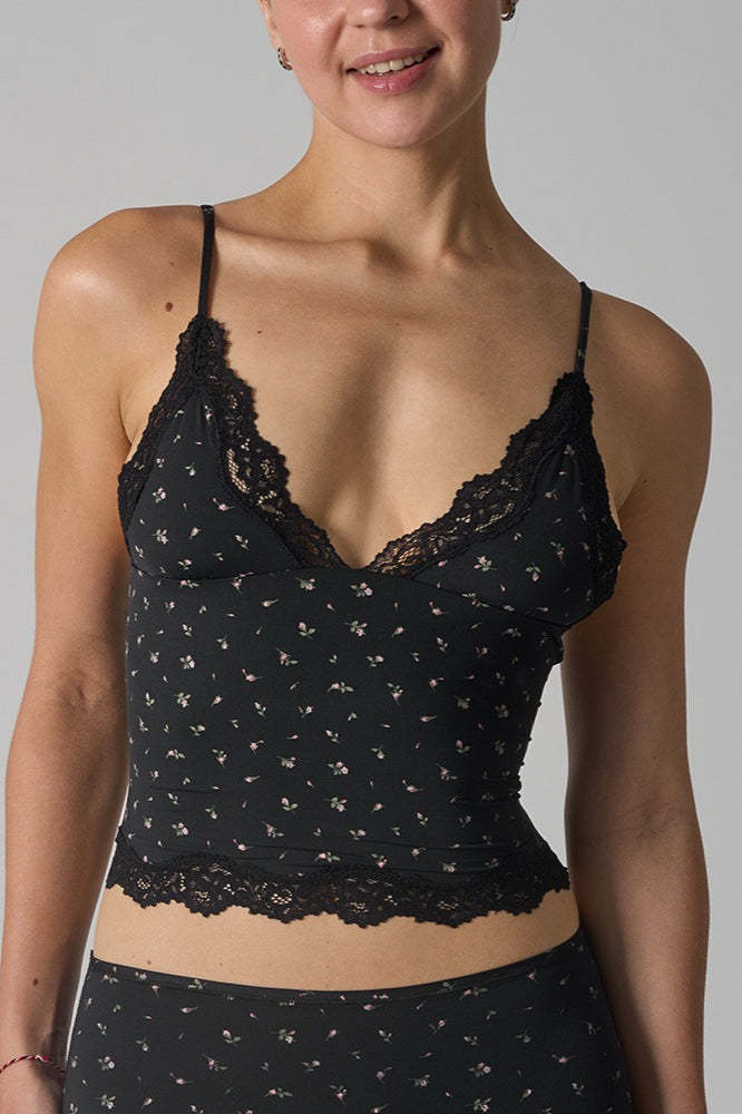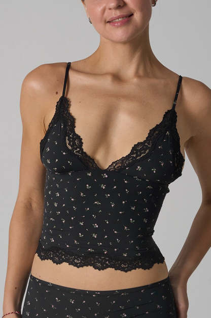 • Fit: Waist Cinched • Composition: Nylon, Knit Fabric • Details: Lace, Floral Print