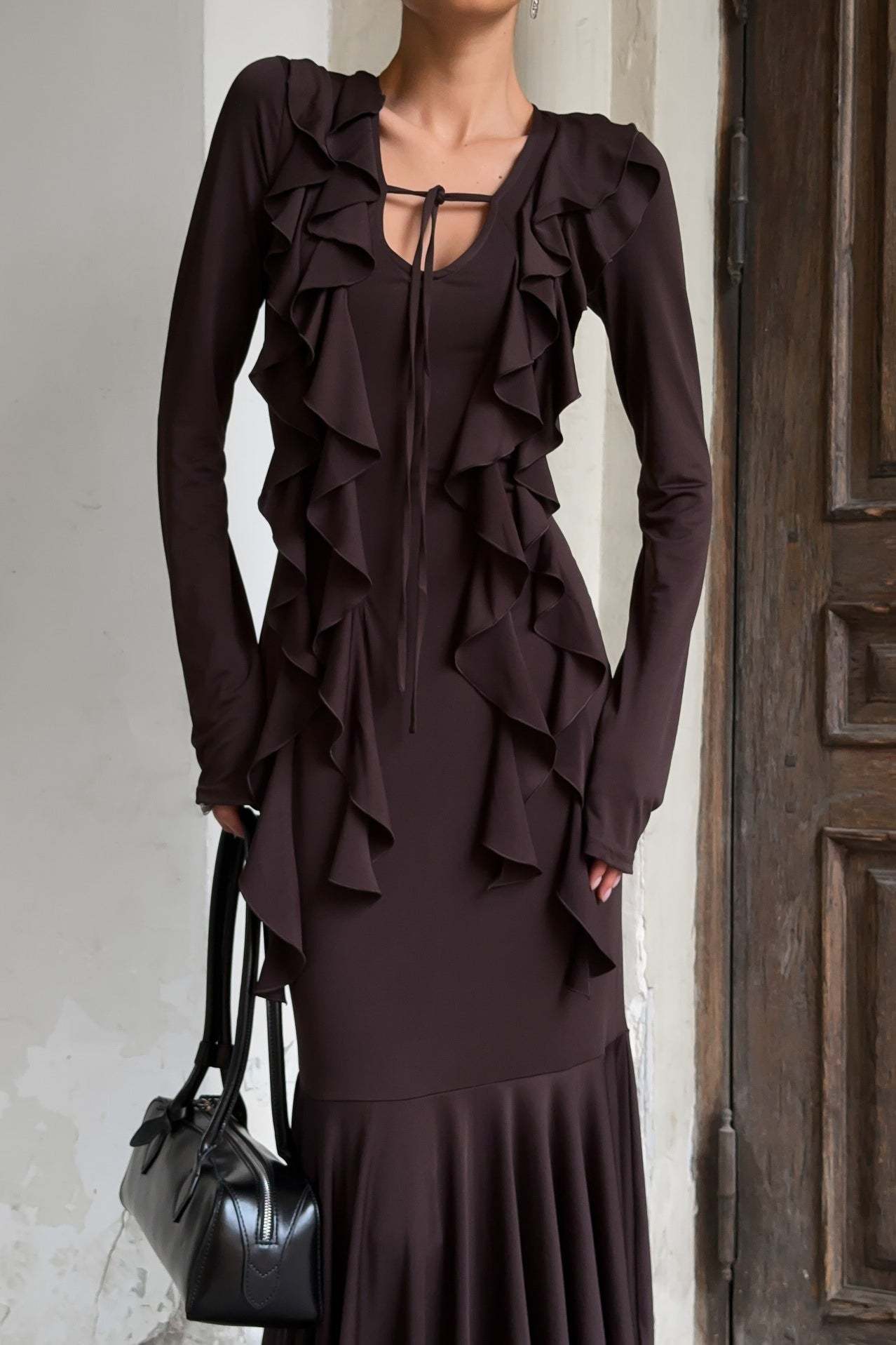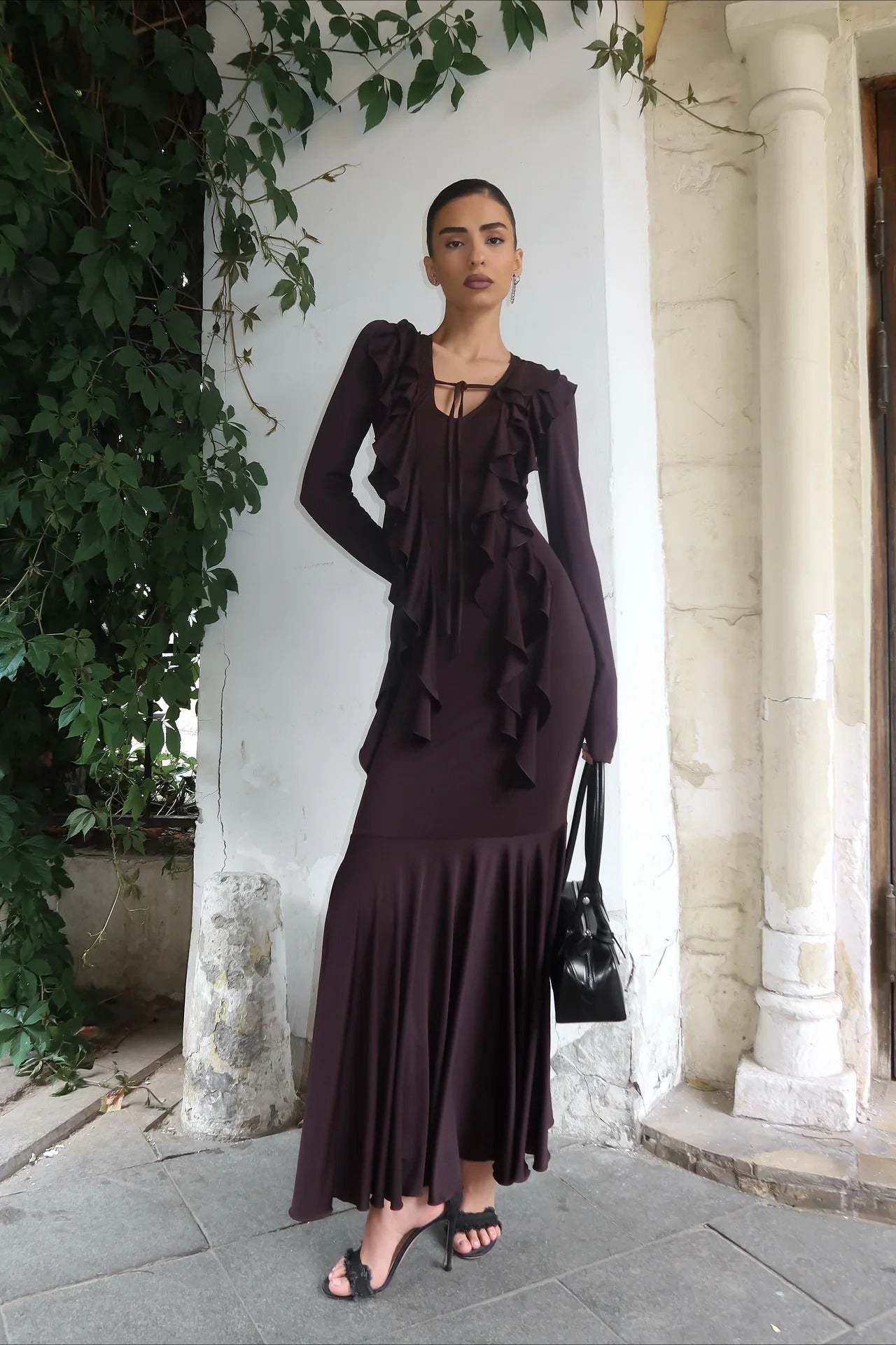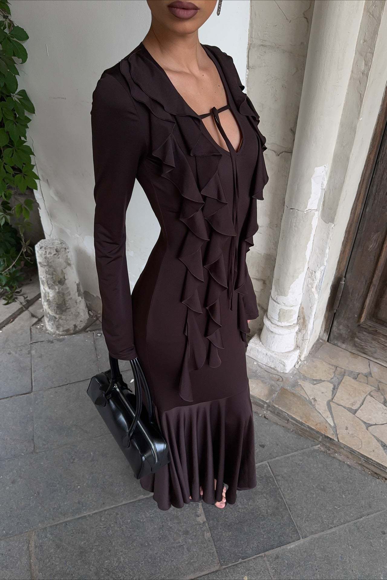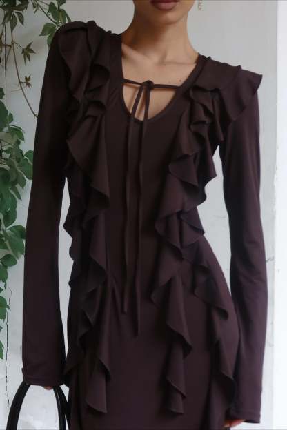 • Dress Length: Maxi • Neckline: V-Neck • Sleeve Type: Regular Sleeve • Sleeve Length: Long Sleeve • Craft: Hollow Out Design