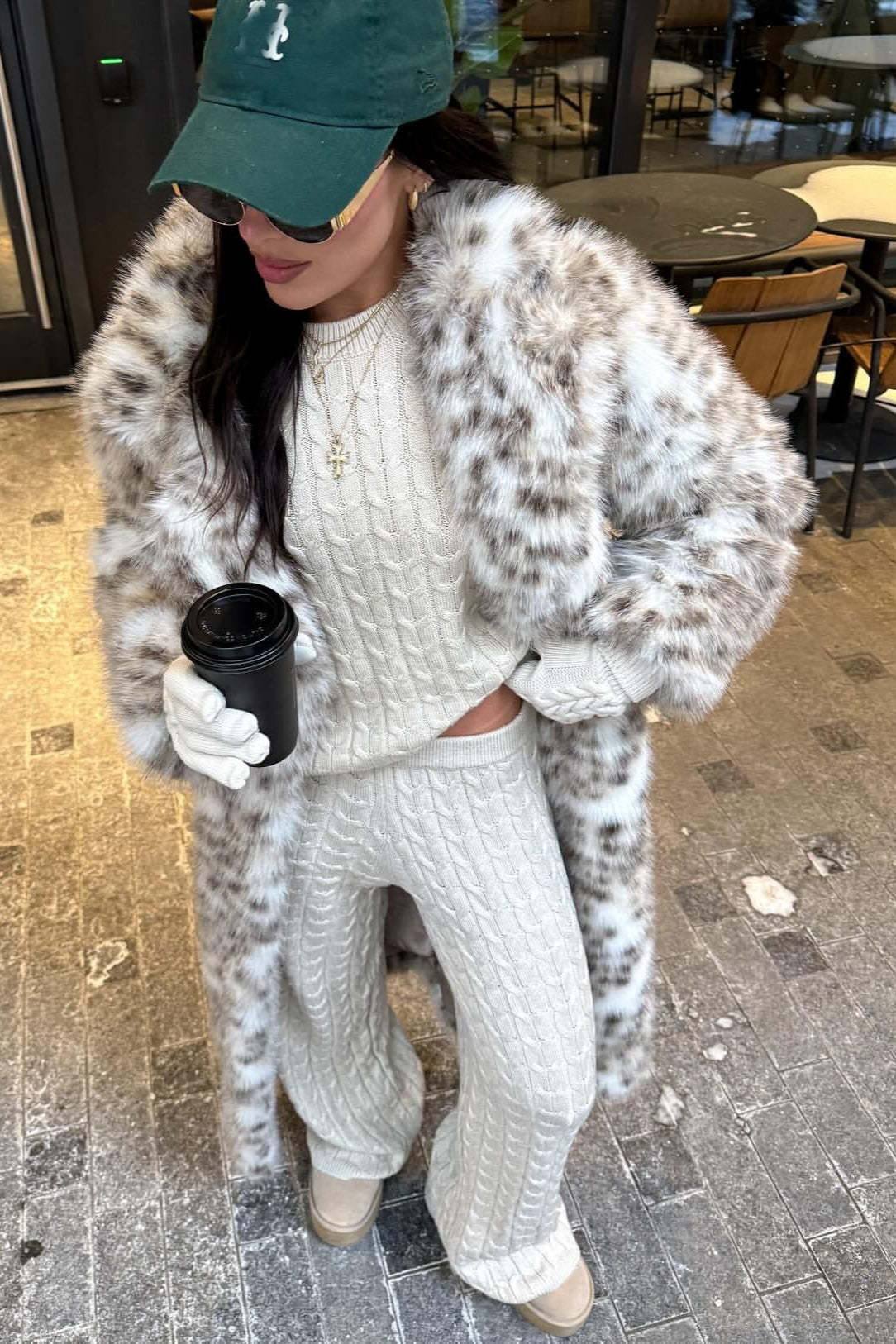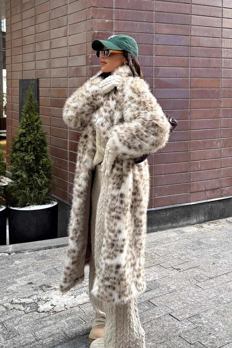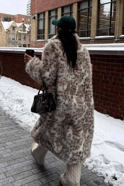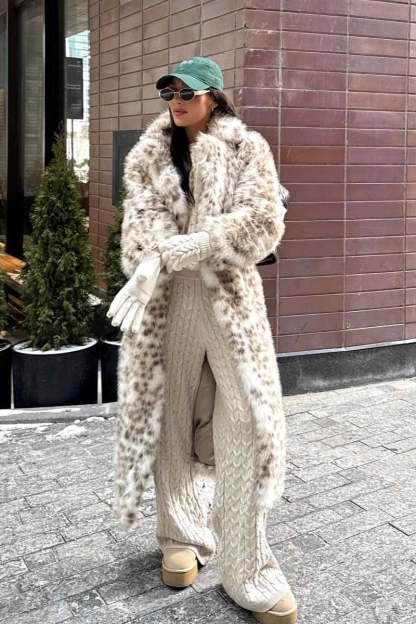 • Neckline: Lapel Collar • Sleeve Type: Regular sleeve • Sleeve Length: Long Sleeve • Composition: Faux Fur • Details: Color Blocking