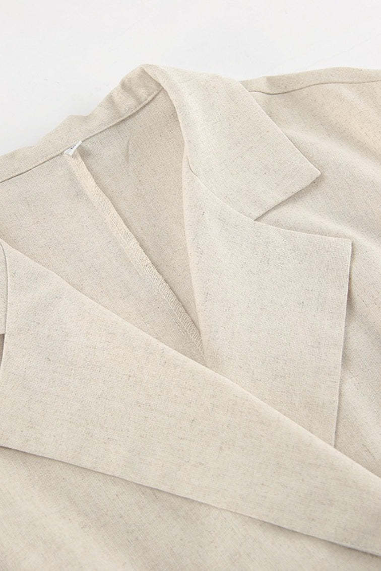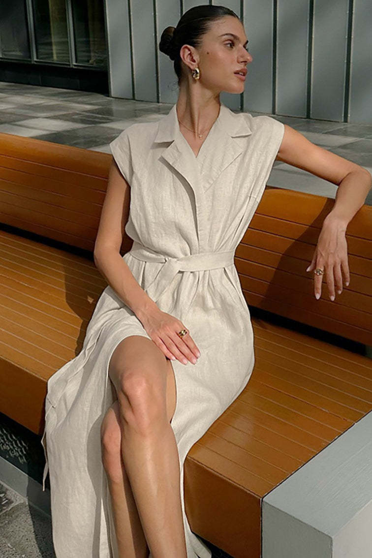 • Clothing Type: A-line Dress • Dress Length: Maxi • Waist Type: High Waist • Neckline: Lapel Collar • Composition: Cotton, Linen • Details: Waist Belt Maxi Dress