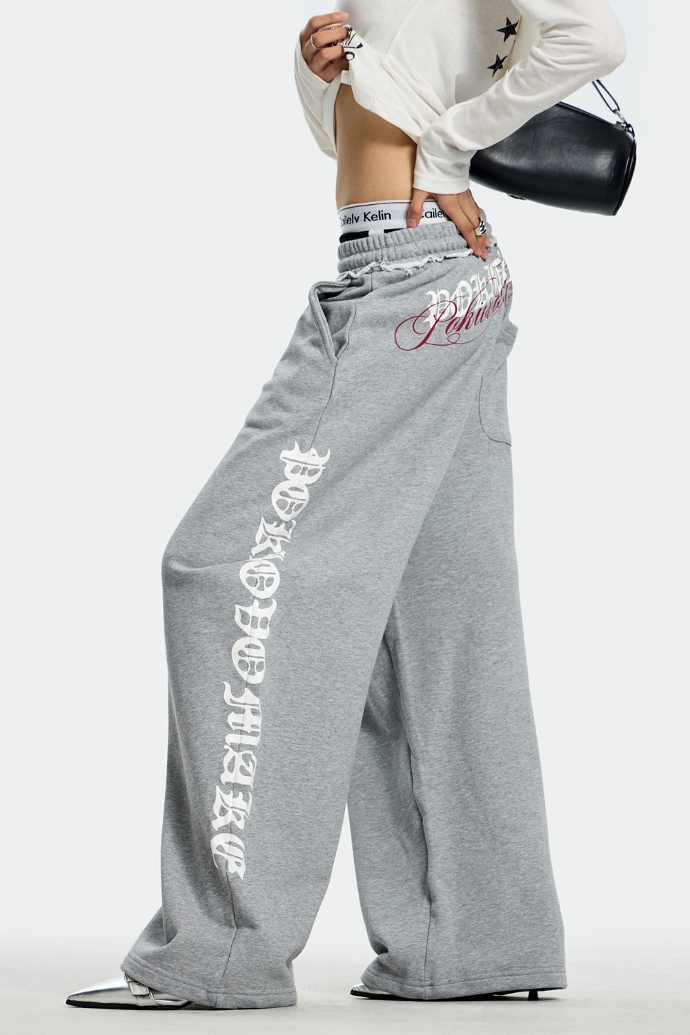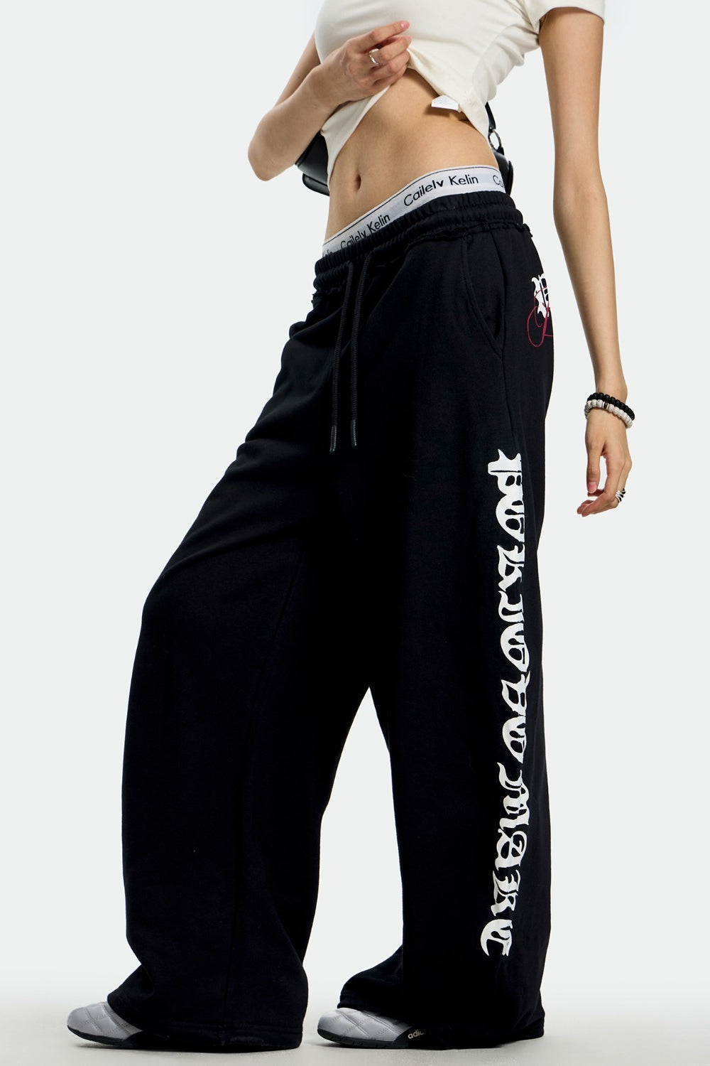 • Clothing Type: Wide Leg Pants • Waist Type: Mid Waist • Details: Color Block • Elasticity: Slight Stretch