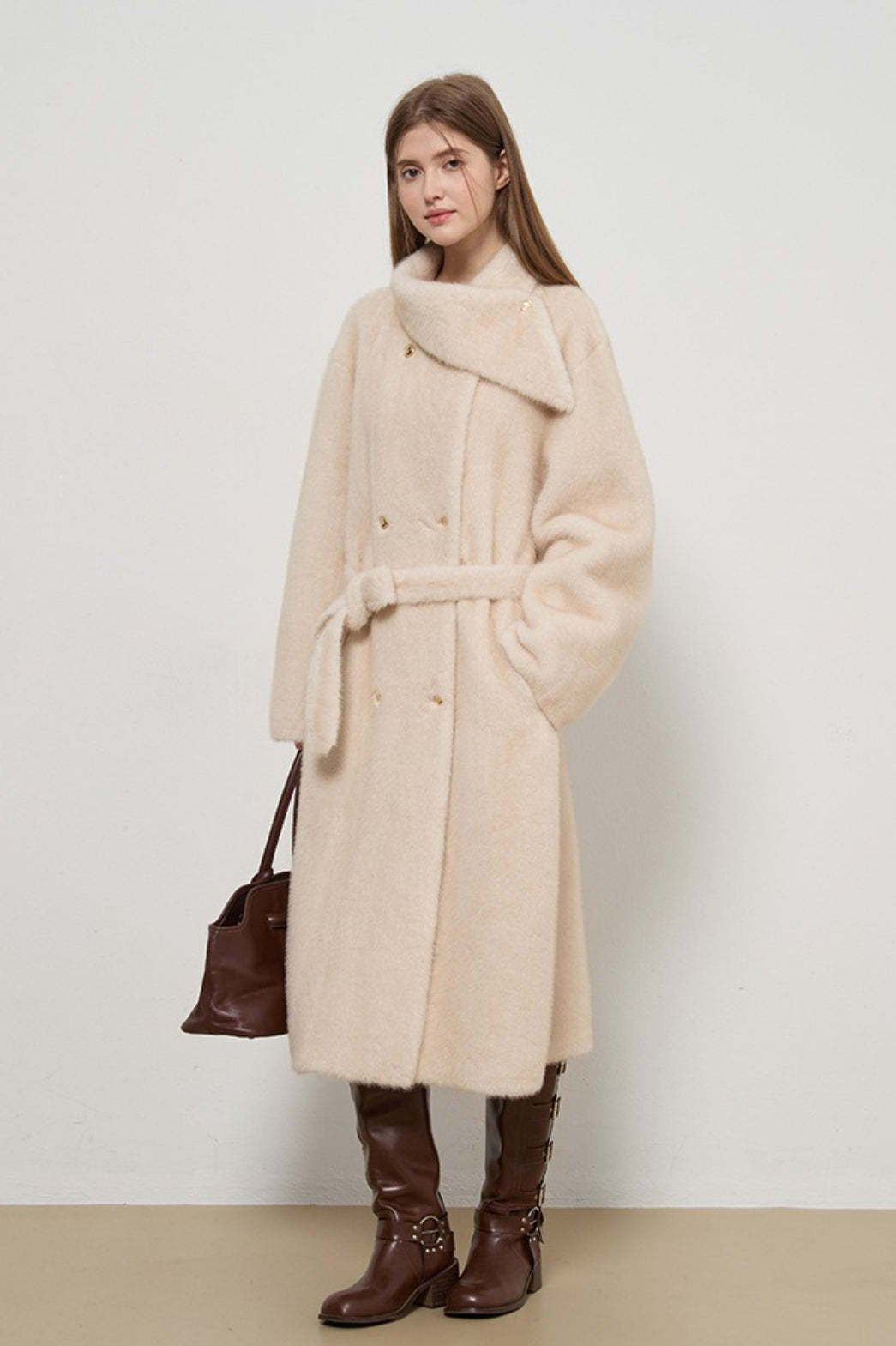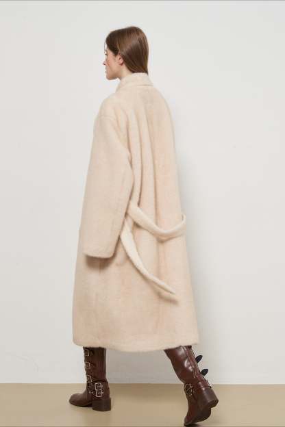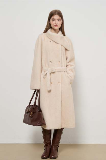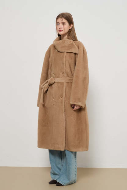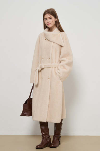 Luxe Faux Fur Tweed Long Elegant Lady Overcoat