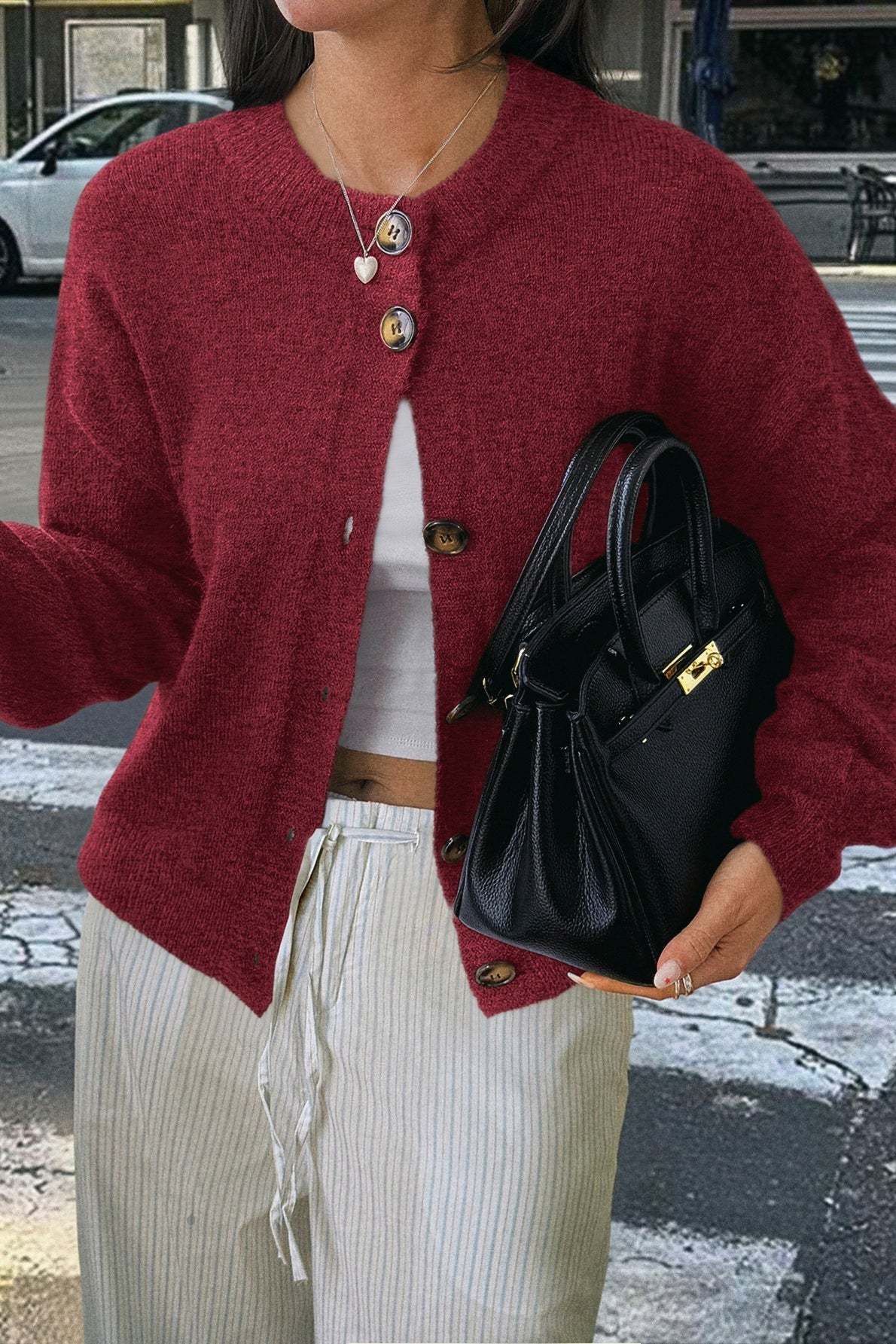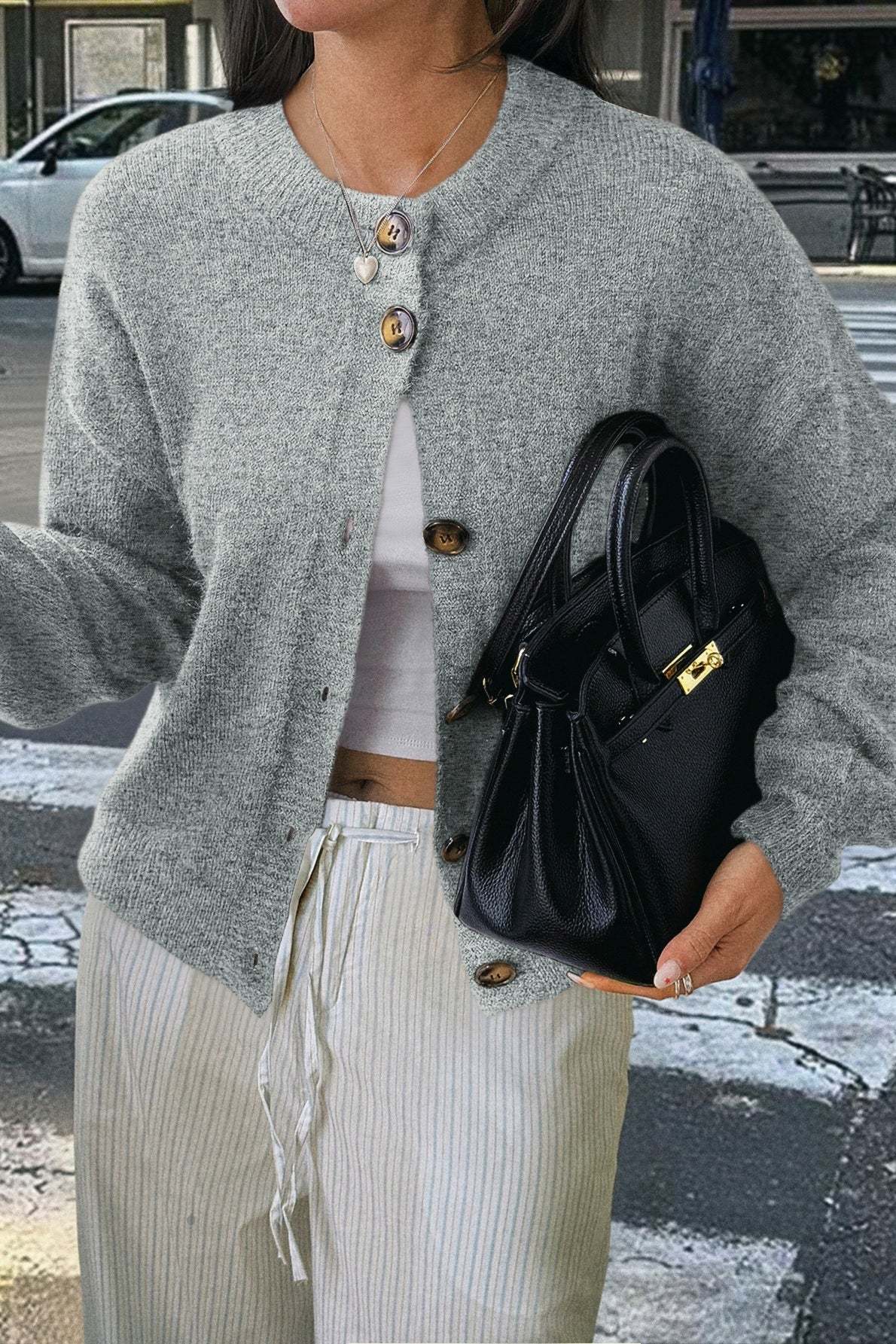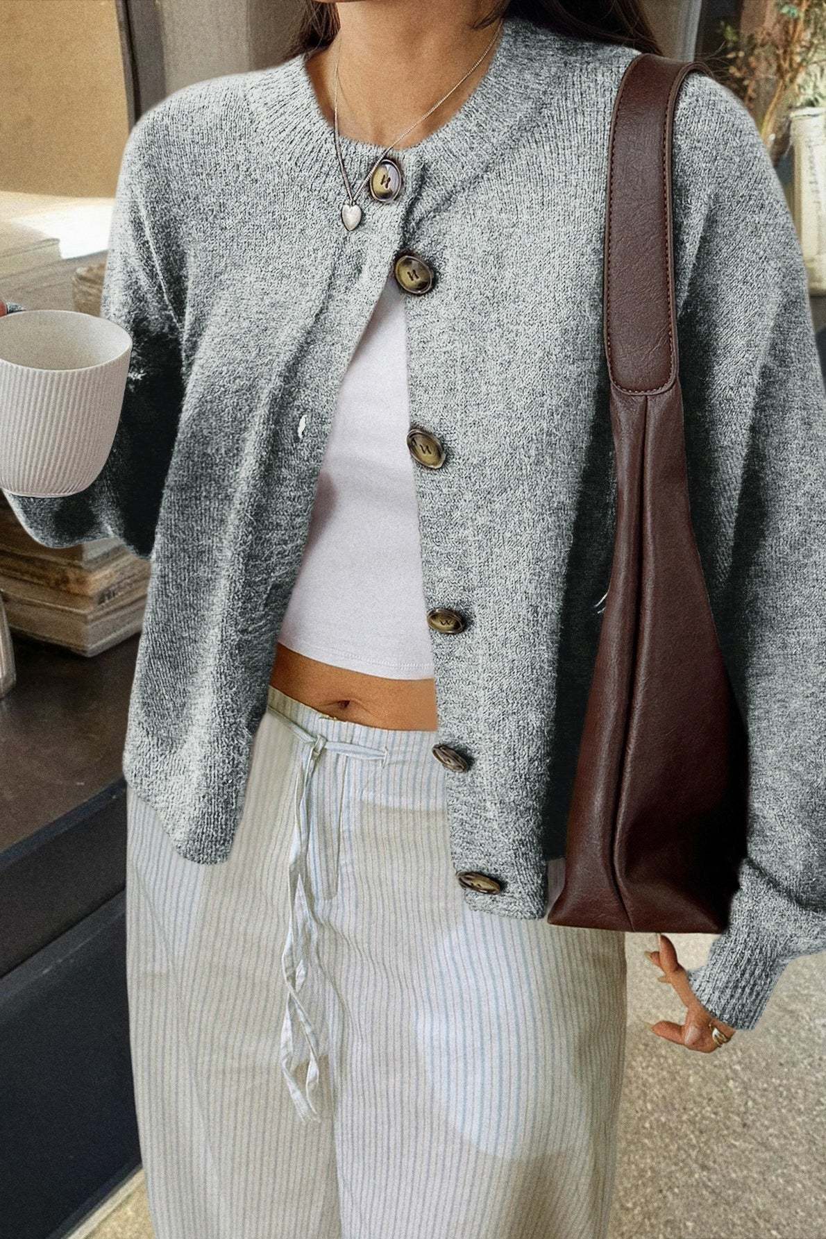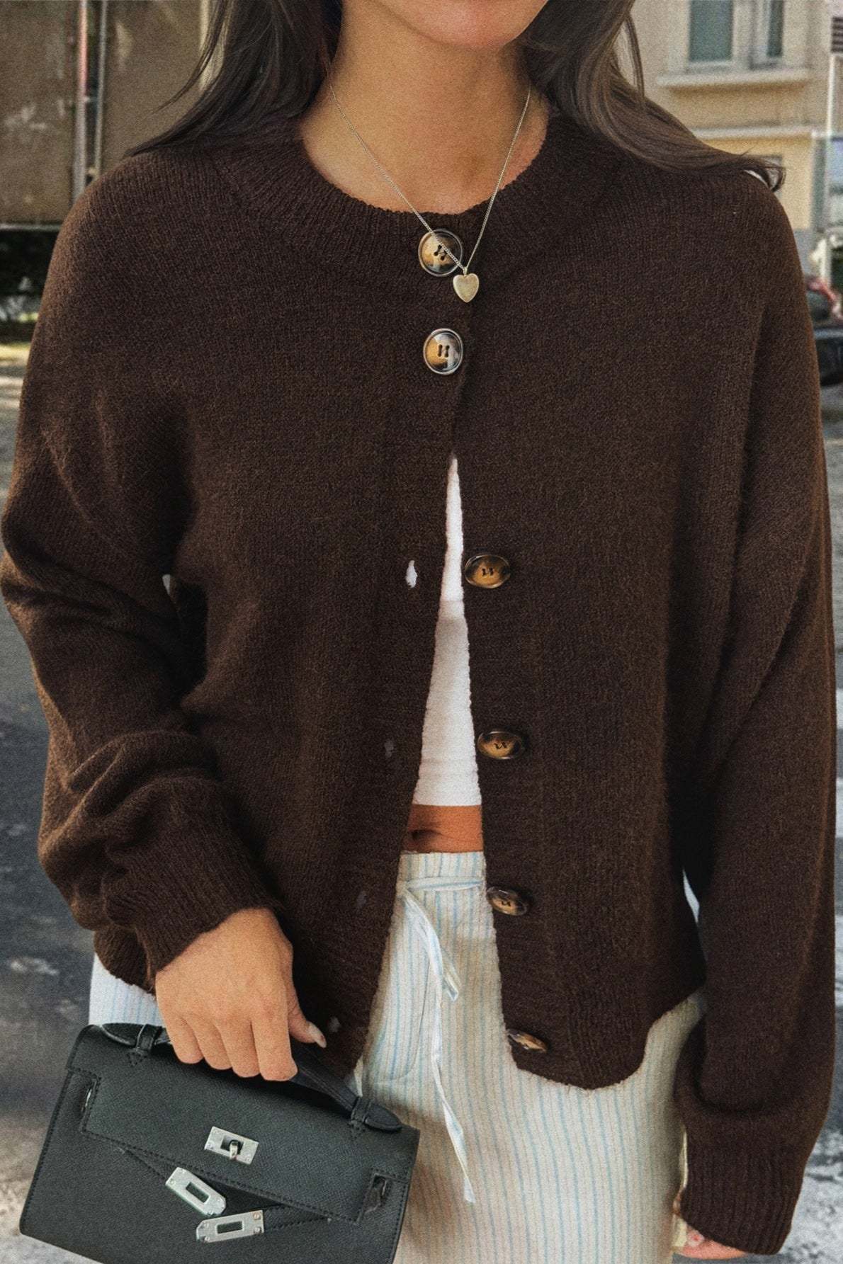 Minimalist Button Long Sleeve Cardigan