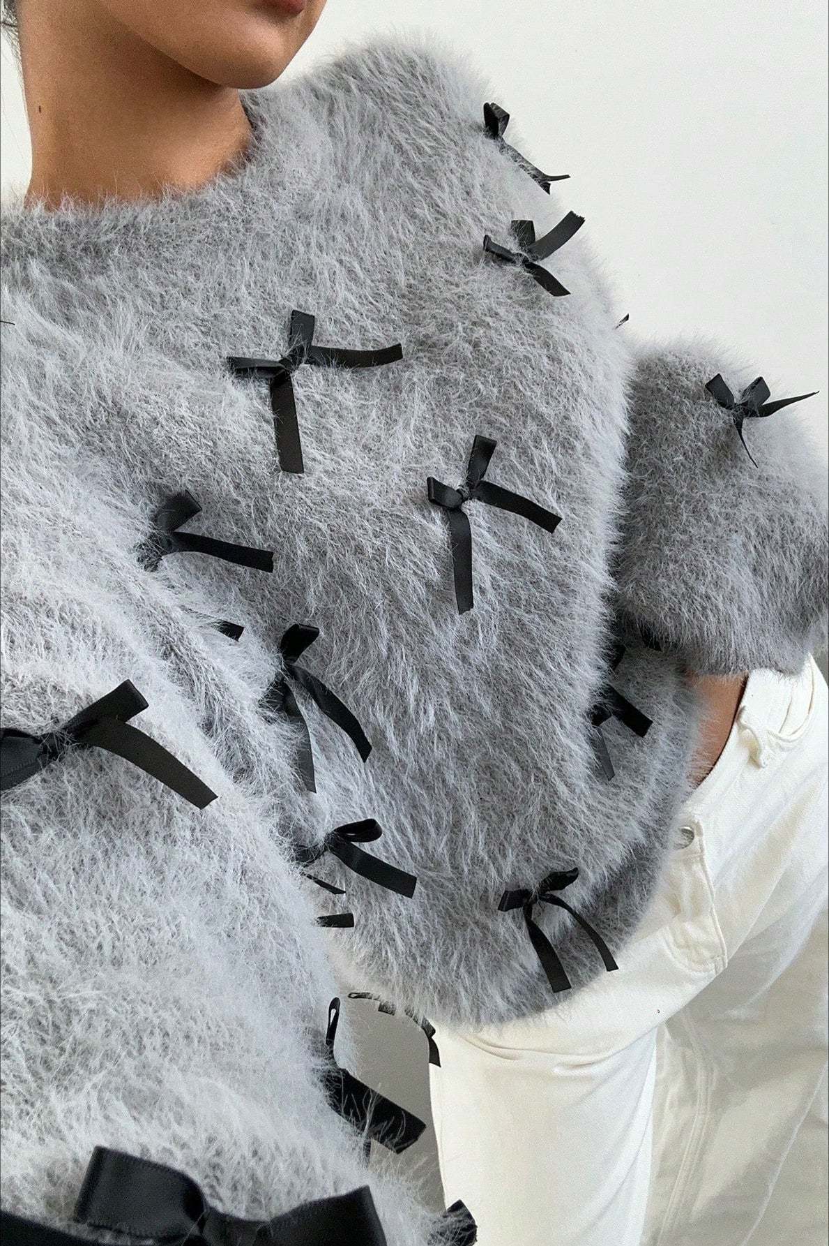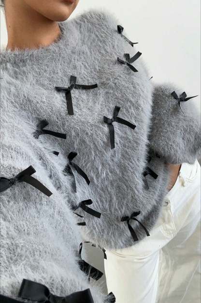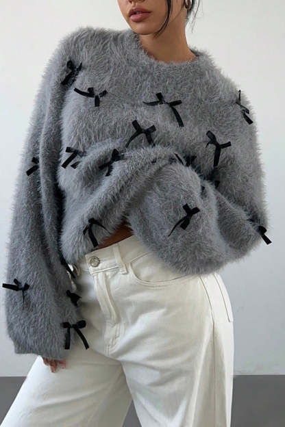 • Fit: Loose Fit • Neckline: Round Neck • Sleeve Length: Long Sleeve • Sleeve Type: Regular sleeve • Details: Bowknot • Composition: Cotton, Polyester