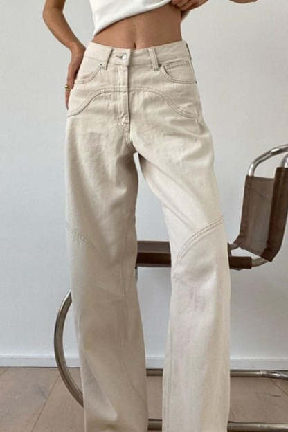 • Clothing Type: Flare Pants • Length: Full Length • Waist Type: High Waist • Details: Solid Color, Washed, Buttons • Composition: Denim Cotton, Polyester