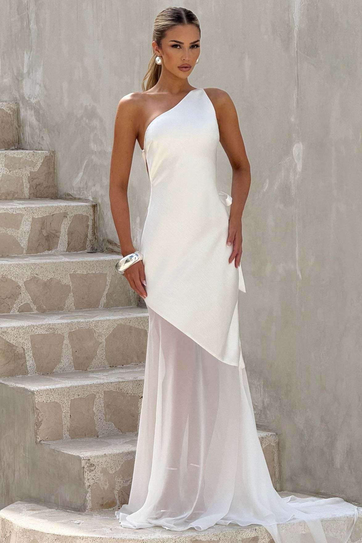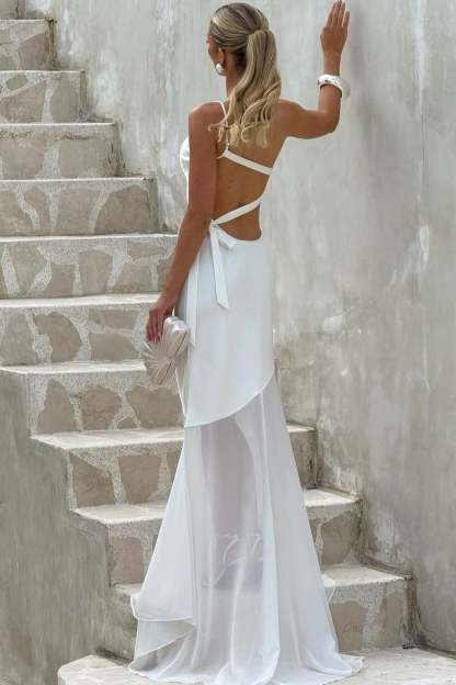 • Clothing Type: Mermaid Dress • Dress Length: Maxi • Waist Type: High Waist • Neckline: Asymmetrical Neck • Composition: Polyester • Details: Open Back Maxi Dress