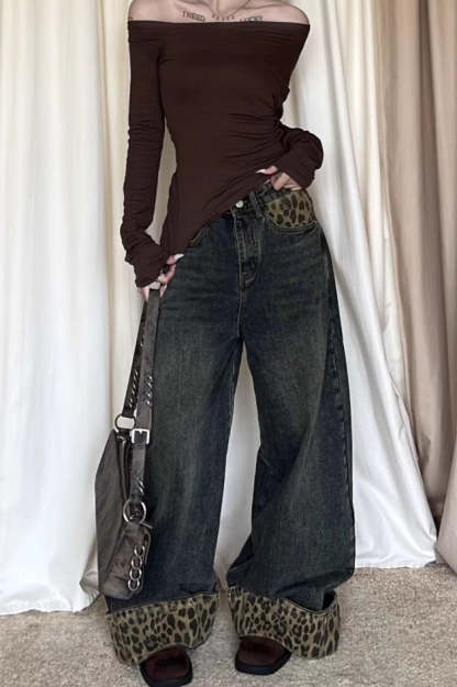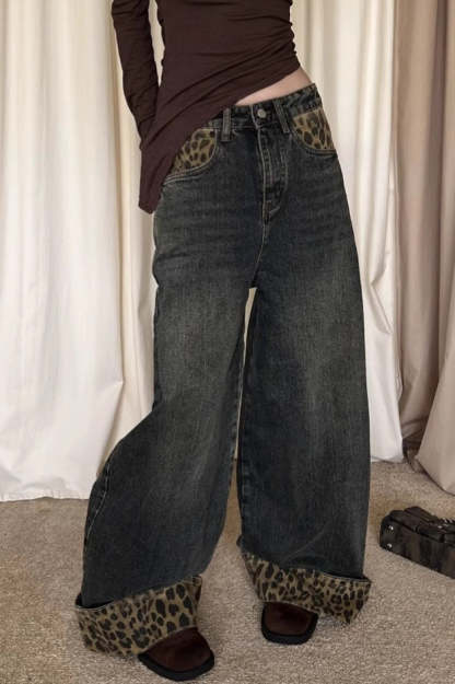 • Clothing Type: Straight Pants • Length: Full Length • Waist Type: High Waist • Details: Patchwork • Composition: Cotton