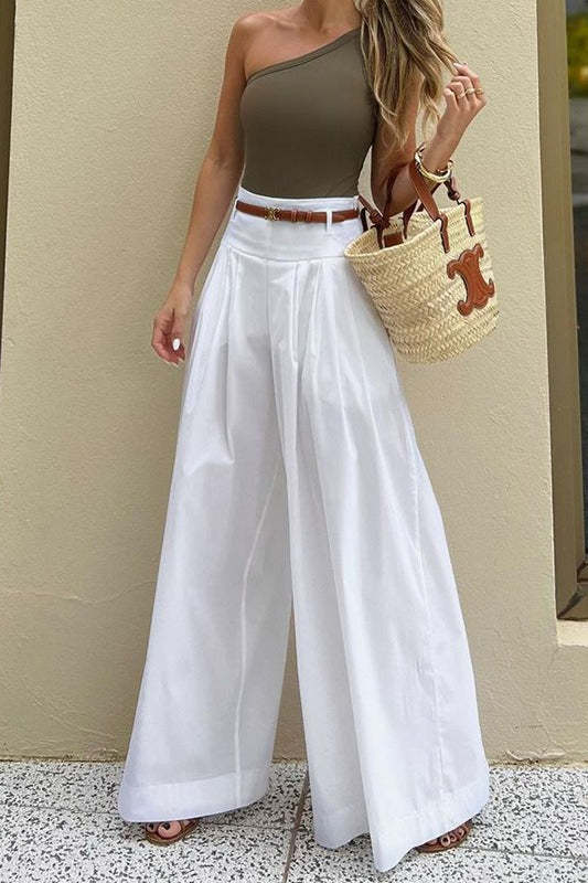 • Clothing Type: Straight Pants • Waist Type: High Waist • Details: Solid Color • Composition: Polyester, Spandex • Elasticity: Non-Stretch