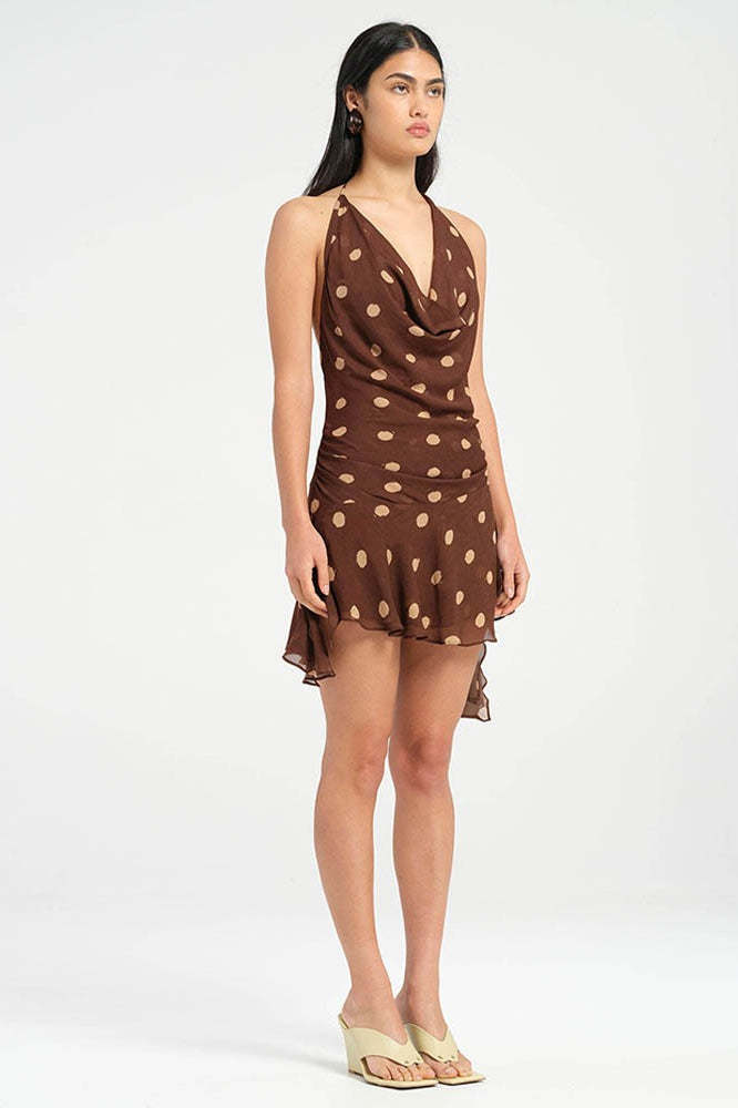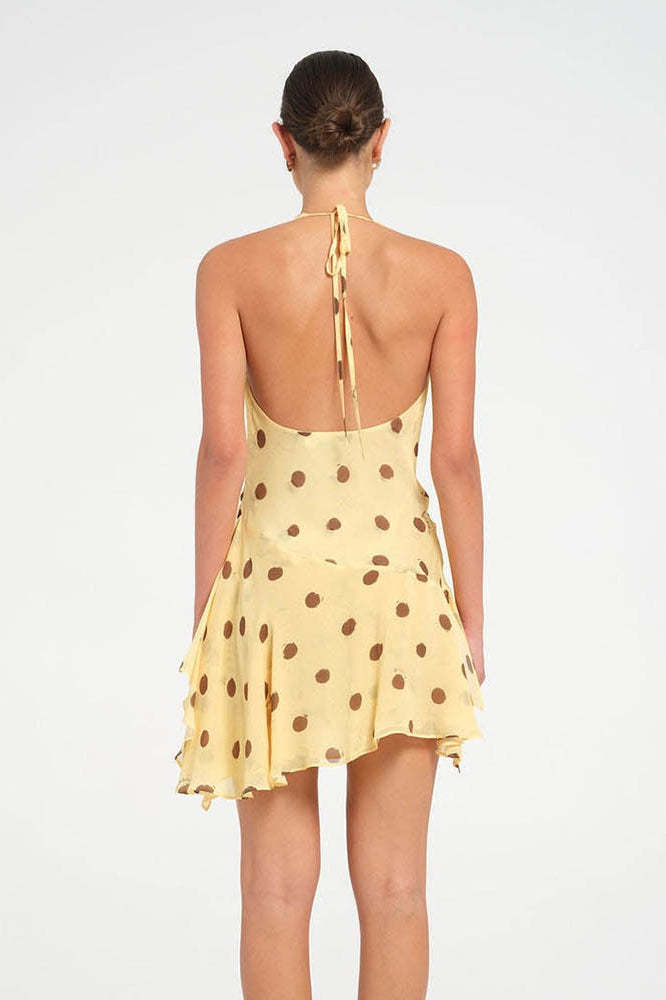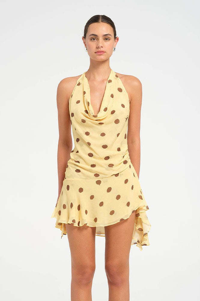 • Clothing Type: Bodycon Dress • Dress Length: Mini • Waist Type: High Waist • Neckline: Halter Neck • Details: Polka Dot • Composition: Polyester