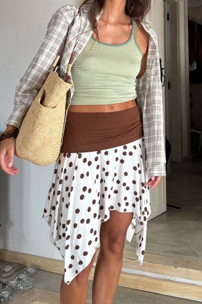 • Clothing Type: Midi Skirt • Dress Length: Mini • Details: Polka Dot • Composition: Polyester, Spandex