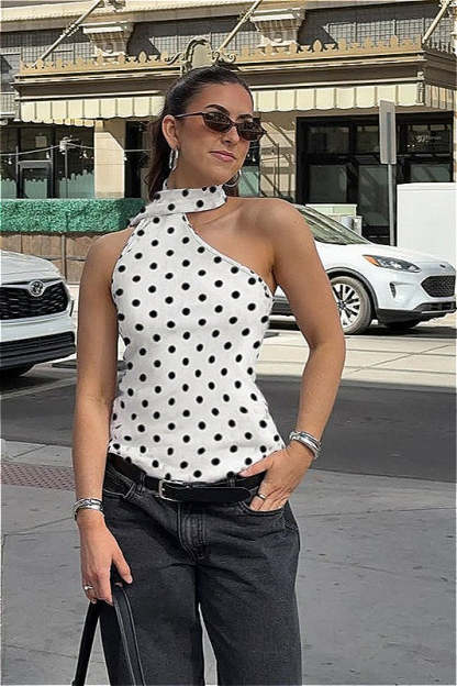 Polka Dot Halter Backless Tie Shoulder Crop Top