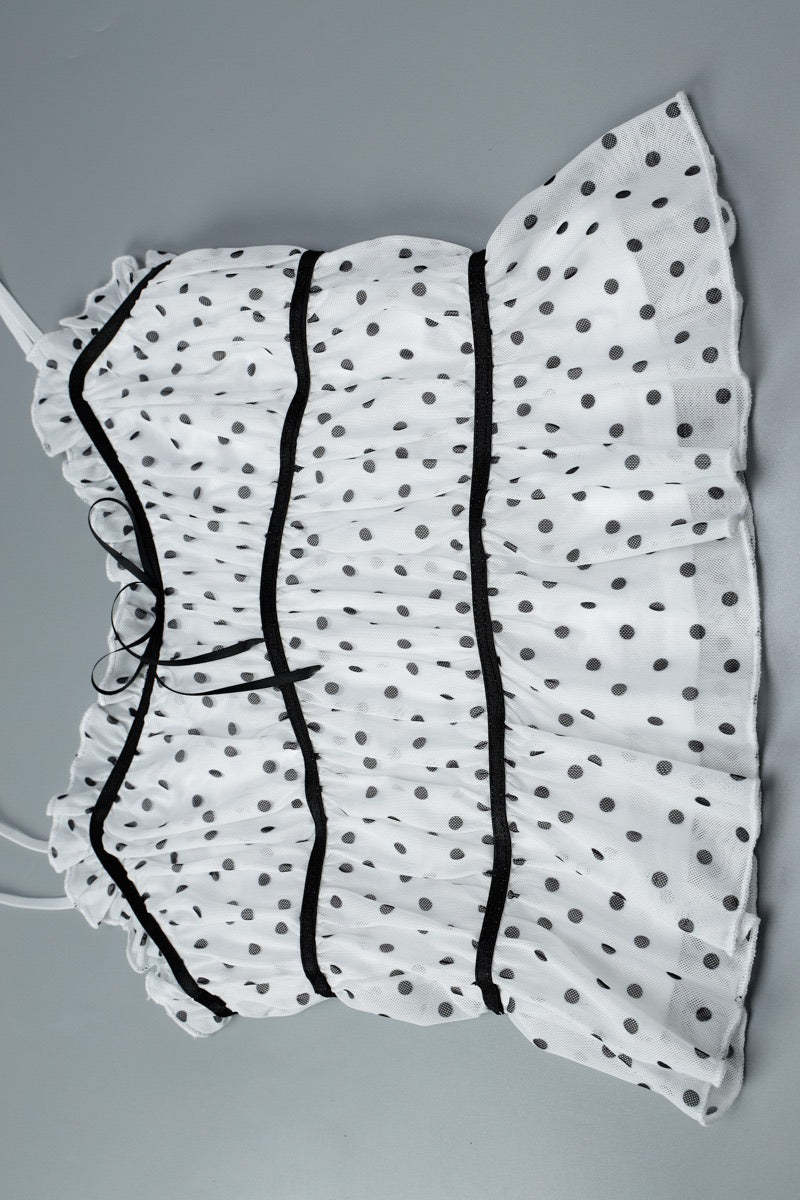 • Fit: Waist Cinched • Composition: Mesh, Spandex • Details: Polka Dot