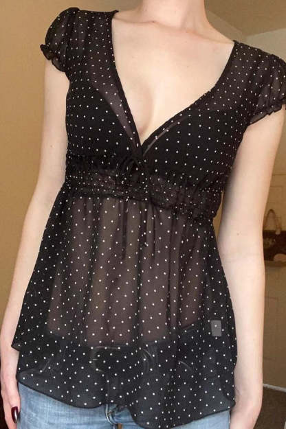 Polka Dot Sheer V-Neck Slim Fit Crop Top